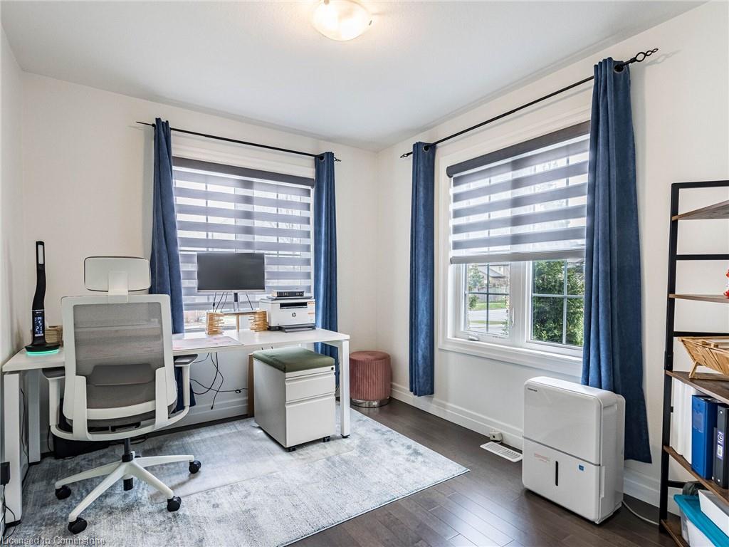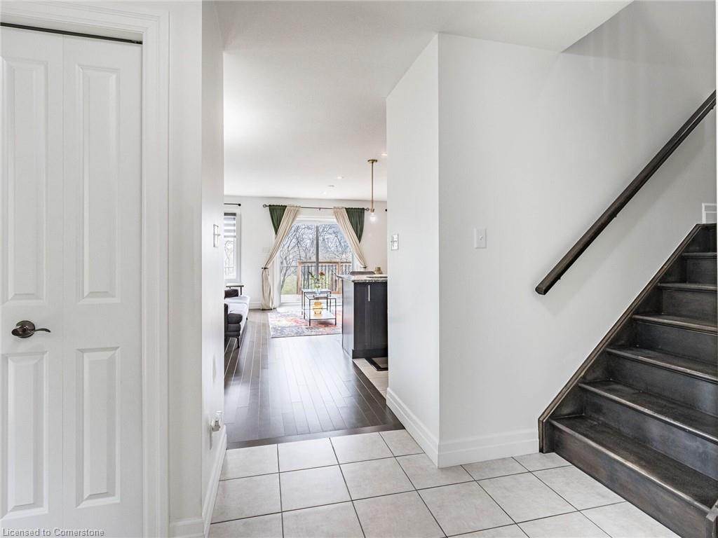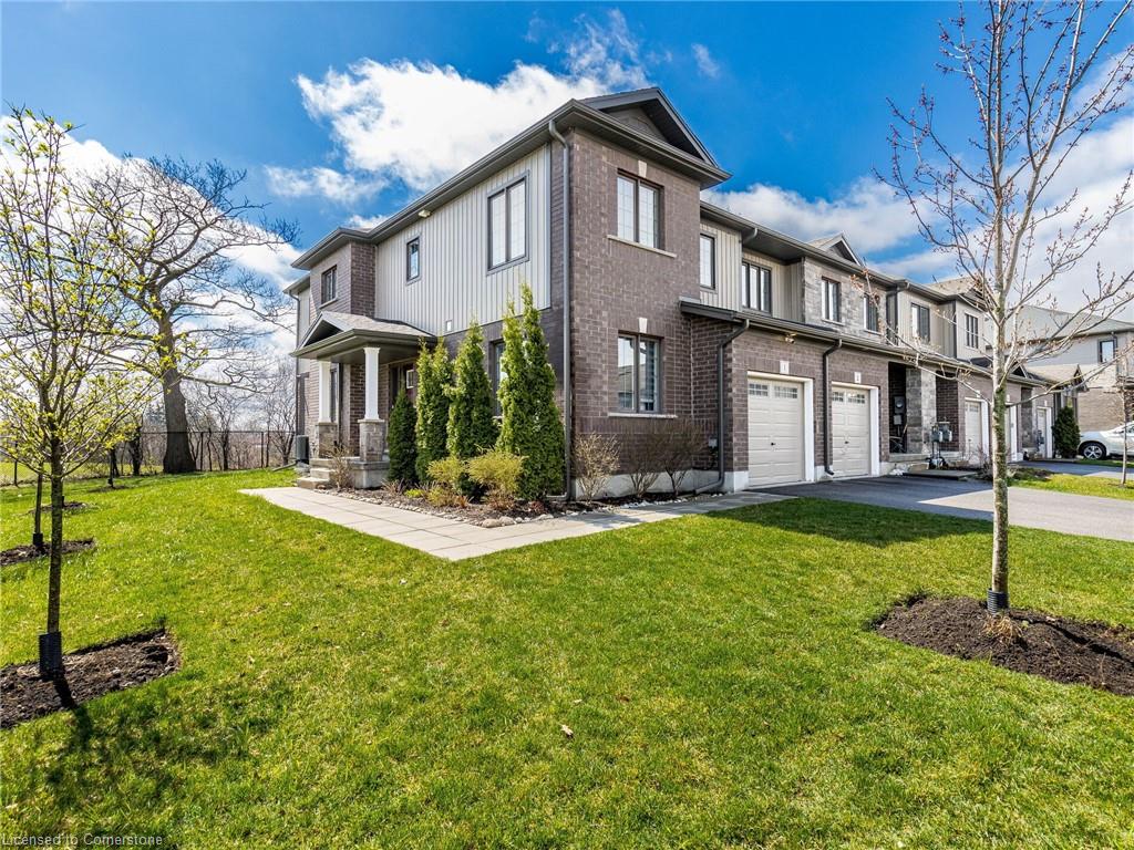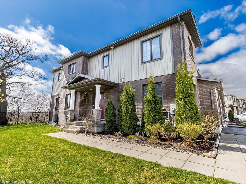 This is a stunning executive residence in the upscale community of Highland Ridge, located in one of the most desirable areas of Cambridge, Galt West. It has a prime location and is just a few minutes away from the 401 highway. The house offers a gorgeous floor plan from Freure Homes, featuring an open concept and a 1,822 sq. ft. end unit townhouse that feels like a semi-detached home. Ample living space. The builder model home features beautiful hardwood floors throughout, no carpet, and a walkout deck from the family room that offers stunning views of the ravine. The large main bedroom upstairs also features these views, providing a tranquil and peaceful setting. It has a five-piece en-suite, his and her sinks, and a spacious walk-in closet. Additionally, two bright bedrooms are upstairs, with plenty of space and a shared main bathroom. The convenience of a 2nd-floor laundry adds extra convenience to this beautiful house, along with the upgraded maple cabinets in the kitchen with undermount lighting and a microwave shelf. A main floor office/den for anyone working from home, but can be easily converted into a bedroom. ESA approved a backup Generac generator panel professionally installed in the basement for a power failure. Generator not included. A minimum starting 10,000W/8,000W running watts generator is required to support rooms connected to the electrical panel.