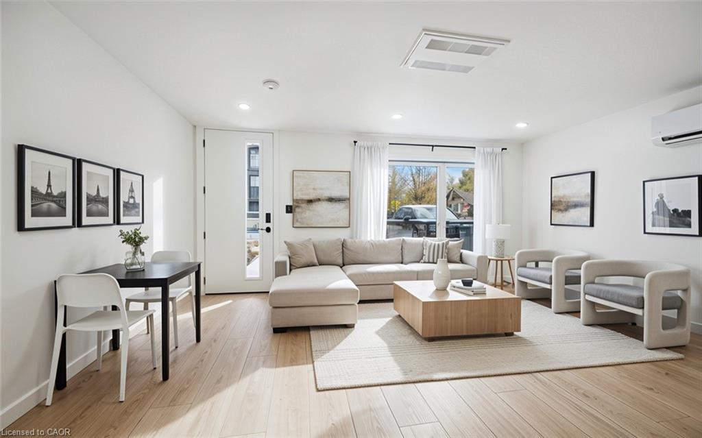 THE ONE that exceeds expectations! Welcome to Unit #1 at 66 Union St E in Uptown Waterloo—a brand new, never-lived-in, bright and beautifully designed 1-bedroom, 1- bathroom studio-style rental that blends modern luxury with boutique-style living. Not interested in a condo, but still want to live in the heart of Uptown? This purpose-built sixplex offers the perfect solution with commercial-grade construction, private entrances, and a unique sense of exclusivity. Inside, you’ll find a stylish one-level layout with an open-concept living space, wide-plank luxury vinyl flooring, quartz countertops, and a sleek kitchen featuring stainless steel appliances (including a dishwasher), and generous storage. The bathroom includes a walk-in shower and features a full turning radius for a wheel chair. The ground level entrance adds to the accessibility of the unit. Enjoy the convenience of your own private mailbox, hydro meter, and heating/cooling controls—plus custom roller shade window coverings already installed. Located in one of Waterloo’s most desirable and walkable neighbourhoods, you’re steps from parks, the Iron Horse Trail, Midtown Hospital, public transit, and Uptown’s best restaurants, shops, and services. Looking for parking? Off-site parking is available as well. The beautifully landscaped exterior includes outdoor bike storage and a shared rear yard with picnic tables. Snow removal, salt application and landscaping maintenance are all taken care of by the landlord, keeping things as low-maintenance for you as possible. This is more than just a rental—it’s home. A must-see opportunity you won’t want to miss!