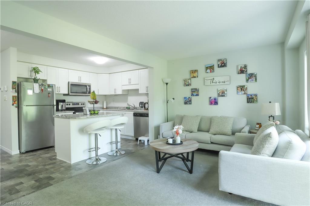 This bright and spacious townhome offers over 1,400 sq ft of modern living in one of Kitchener’s most desirable neighborhoods. Features include an open-concept main floor, a large primary bedroom with a 4-piece ensuite, and two additional bedrooms with a full bath. The unfinished basement provides extra storage space. Conveniently located just 1 minute from Hwy 401 and close to Conestoga College, schools, trails, parks, and shopping.