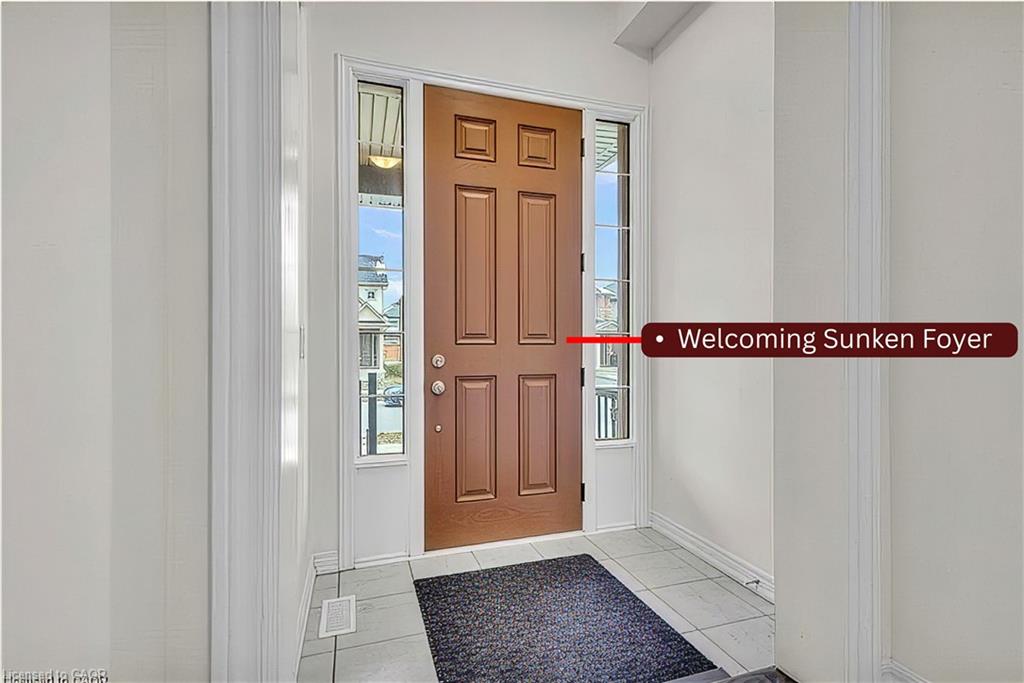 inside to a sunken foyer that opens to the elegant dining area beside the upgraded oak staircase, perfect for family meals, entertaining, or quiet