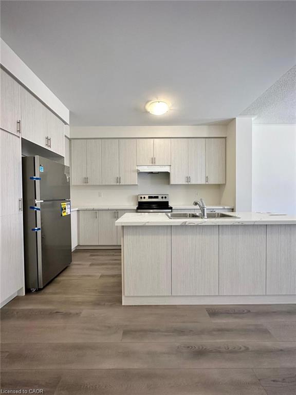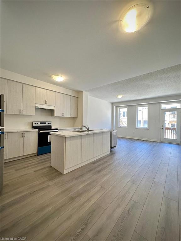 Welcome to 10 Lidstone Street, Cambridge! Be the first to live in this brand-new townhouse, available for lease in a vibrant, family-friendly community. Offering 3 spacious bedrooms and 3 bathrooms, this home blends modern style with everyday comfort. The carpet-free main floor features elegant hardwood flooring and a sleek, contemporary kitchen with stainless steel appliances, quartz countertops, and a large island—perfect for cooking, dining, or entertaining. From the living area, step out to a private outdoor space that’s ideal for relaxing or hosting friends. Upstairs, the primary bedroom boasts a walk-in closet and a luxurious 5-piece ensuite. Two additional bedrooms share a bright 4-piece bathroom, and convenient upper-level laundry adds ease to your daily routine. With an attached garage, driveway parking, and quick access to highways, parks, schools, and shopping, this home offers both comfort and convenience. Don’t miss the chance to make this beautiful, never-lived-in property your new home book a showing today!