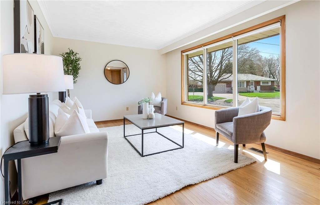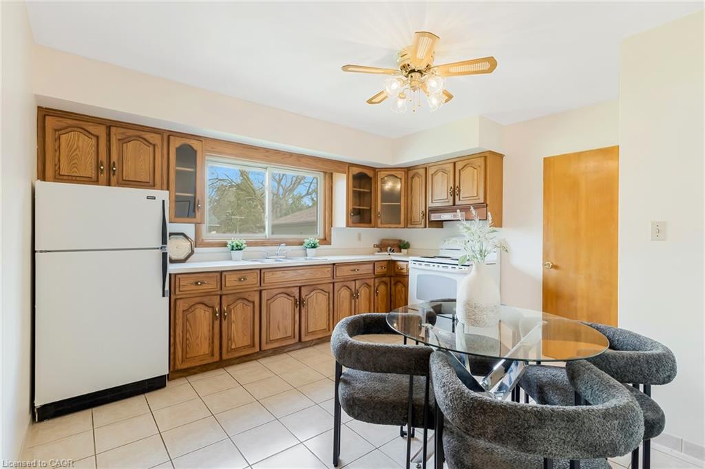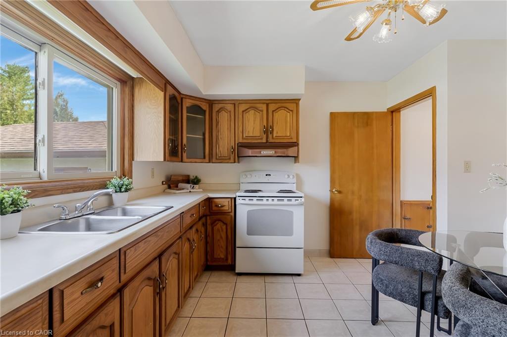 Opportunity meets practicality in this solid brick bungalow set on a large pie-shaped lot in Guelph. This mature home (built in 1964), has ample living space (965 sqft AG + 915 sqft BG), three bedrooms, two bathrooms and a sun-filled main living space. The large kitchen over looks the backyard and includes additional space for family dining. The home is move-in ready while also presenting a compelling upside. The finished basement is already equipped with a second kitchen, dining area, and a second bathroom, making it ideally suited for conversion into a separate dwelling unit. With a side entrance that leads to the basement stairs, there's perfect potential for multi-generational living or rental income with minimal work required. With a detached single car garage and generous driveway providing ample parking, plus a spacious backyard, this property checks the boxes for both homeowners and investors looking to maximize value. Some recent updates include a new furnace and air condition in 2023, a new roof on the home in 2015 and the garage in 2018.