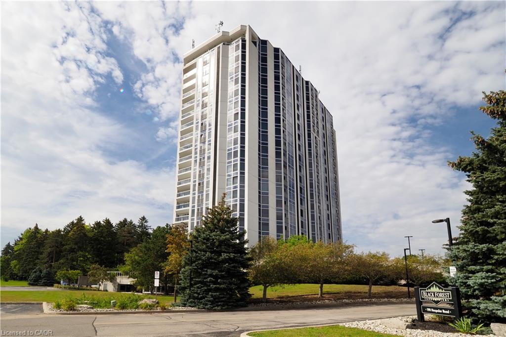 Opportunity knocks! Unit 1001 at the Black Forest is designed to impress, as soon as you enter the Building you know you are at one of the finest condos in Cambridge! If you have been considering a condo lifestyle, come have a look, with over 1500 sqft, open concept Living room, Dining room & solarium sitting area, you sure won't feel like a downsize! You will love that this unit is loaded with windows capturing the sunrise in the Primary bedroom and the Sunset in the Livingroom! You literally have Floor to ceiling windows capturing a 180 degrees view of the north end of the city! 2 bedrooms, 2 full baths (one being a 5pc Ensuite with soaker tub over looking the city lights!) You will also be impressed with fantastic amenities like pool, fitness, party room, games room and even tennis/pickle ball courts! This unit has one parking space and a locker for additional storage!