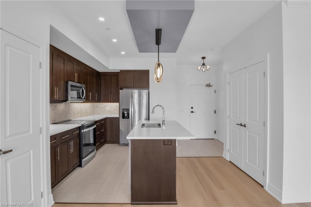 Amazing breathtaking panoramic views! Discover stylish luxury living in one of Guelph's most prestigious locations. Welcome to the coziest unit #1003 at 1878 Gordon St. Features 2 bedrooms, 2 full bathrooms with 1 underground parking spot. This spacious and bright unit is beautifully designed and filled with lots of natural light. Exceptionally designed interior, open concept living with modern luxury finishes including 9-ft ceilings, a large kitchen with premium stainless steel appliances, quartz countertops, under-mount cabinet lighting, an island, and ample room for a dining room table. Freshly painted, brand new luxury flooring, update modern new light fixtures throughout.
