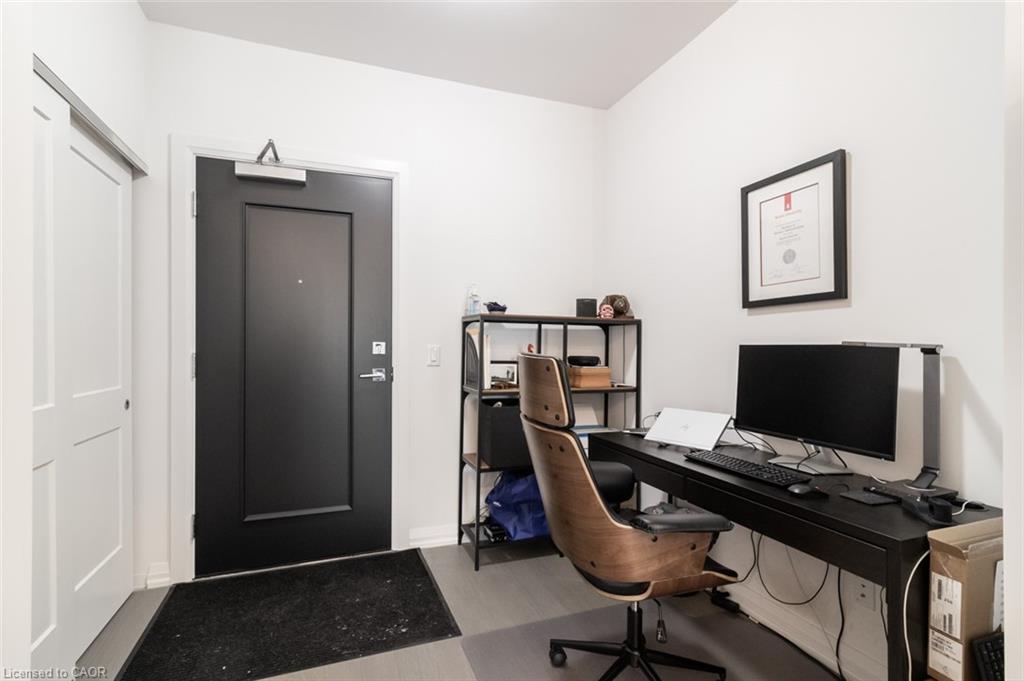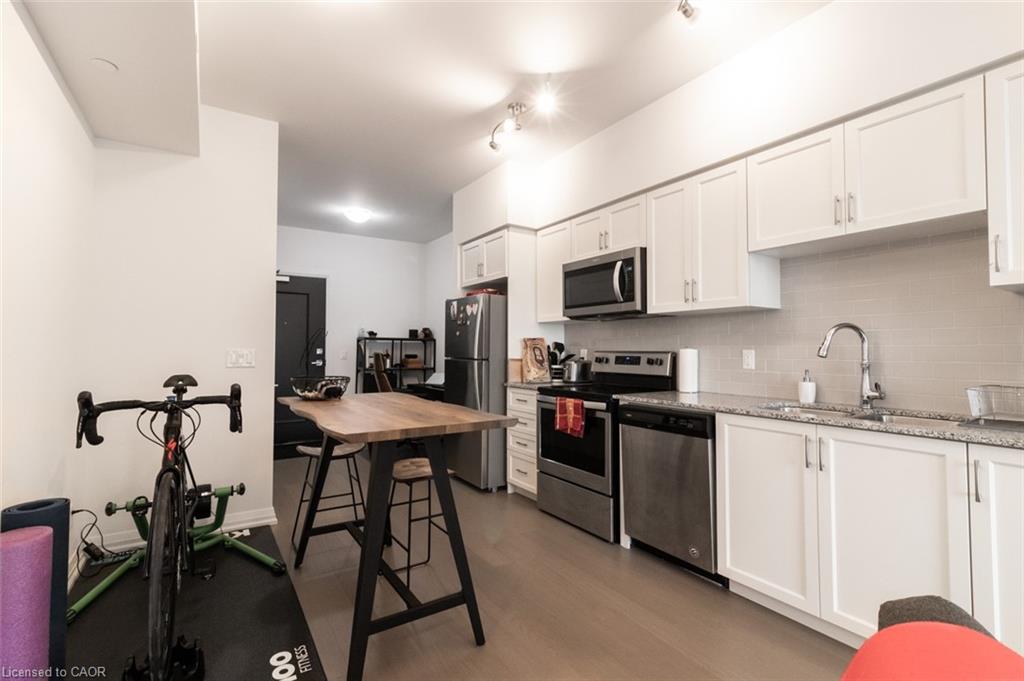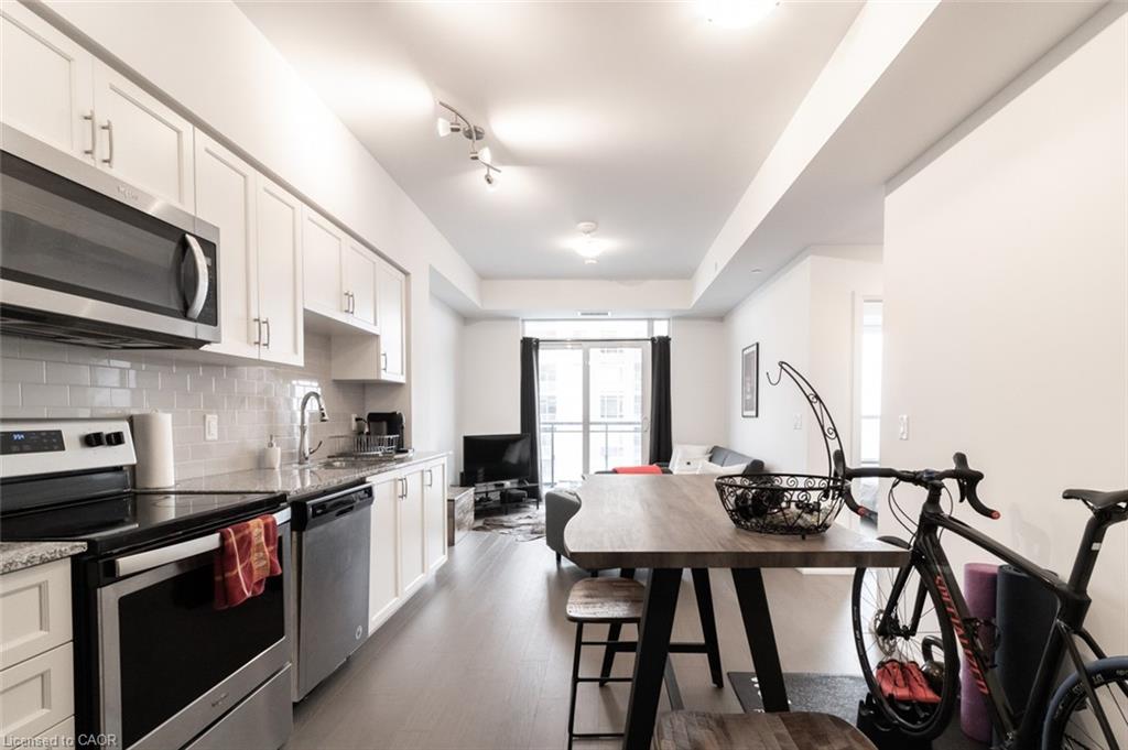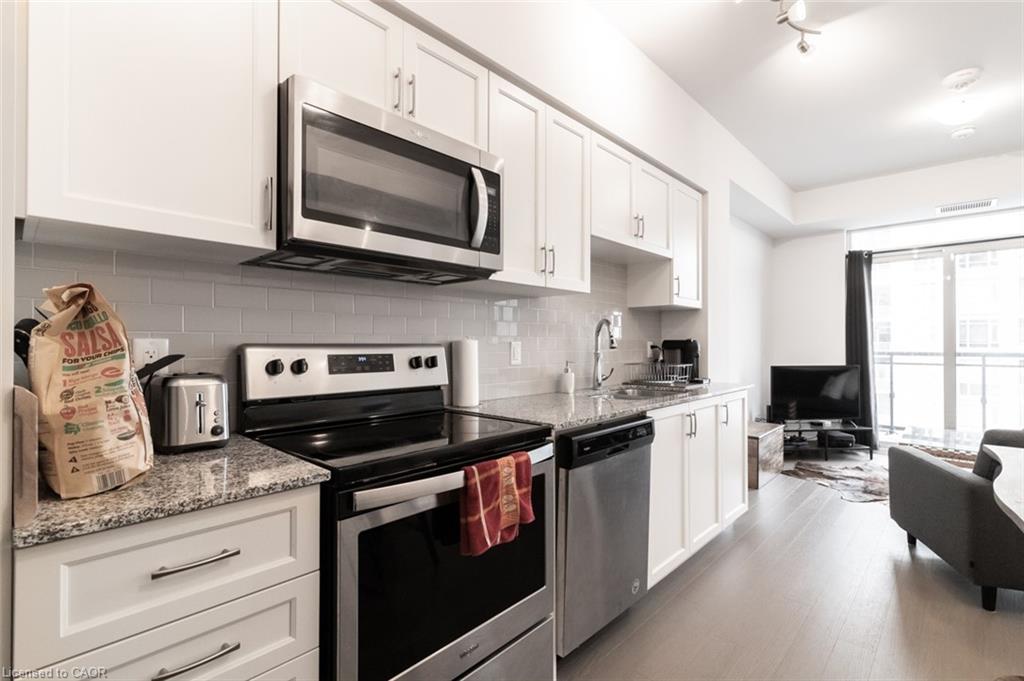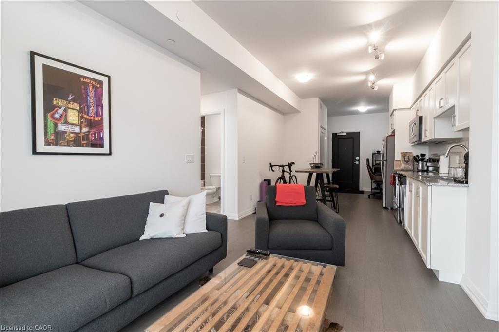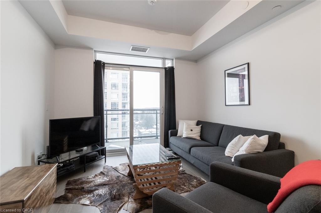 Welcome to 1005-155 Caroline Street Private Residence. This unit has one bedroom plus den, one bathroom and comes with one underground parking spot and one locker. There is a nice entry hall that brings you to the kitchen that has ample cabinets, stainless steel appliances and granite countertops. The kitchen/living room is open concept providing a great space for entertaining. The den can be used as a home office or a dining room. The entire suite is tied together seamlessly by the flooring. There is a lovely 69 sqft. balcony that offers stunning views of the City and floods the unit with tons of natural light. The building itself offers state of the art Amenities such as secure entrance, Concierge Services, beautiful gardens and even a Putting Green. Guest suites, Fitness Centre, Games/Party Room. It is close to both Universities, Sunlife, Google and the Innovation Centre. Located right in the heart of Uptown Waterloo and just steps away from Restaurants and Bars, Belmont Village, upscale shopping and right across the street from Vincenzo's which is as close to Italy as you can get! Foodies will love this location with all that it has to offer. Leave your car at home and use the LRT to get you around the City! OCCUPANCY DECEMBER1ST/2025