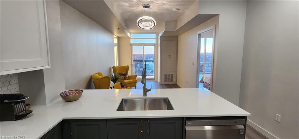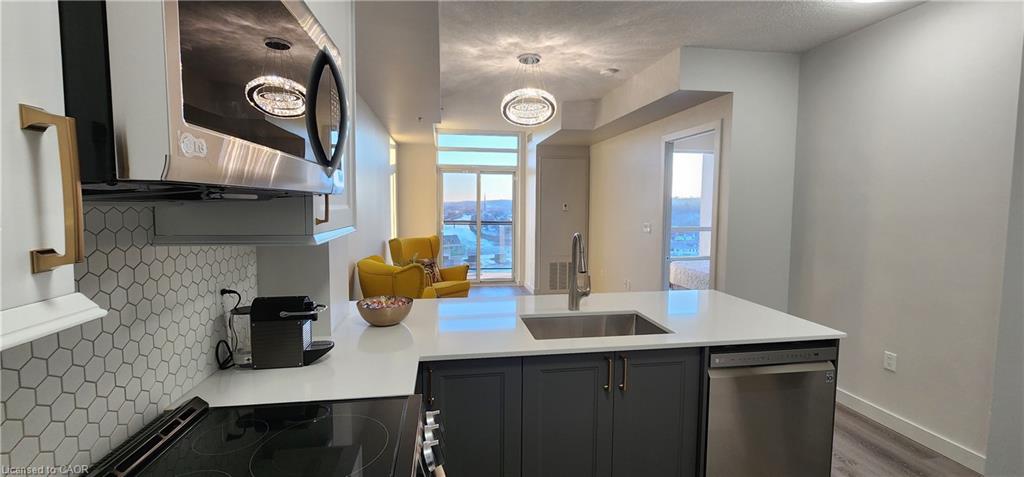 Professionally Designed and Renovated 1 Bed + Den Condo Apartment in most sought building in Downtown Galt, Cambridge. Located on the 10th floor with scenic views of Downtown Galt and Grand River. Great place to live as for young professionals so and for retired people. Includes one underground parking on Level B and a locker on Mezzanine. Parking, locker, utilities, except hydro are included in monthly rent. May be leased furnished as well.