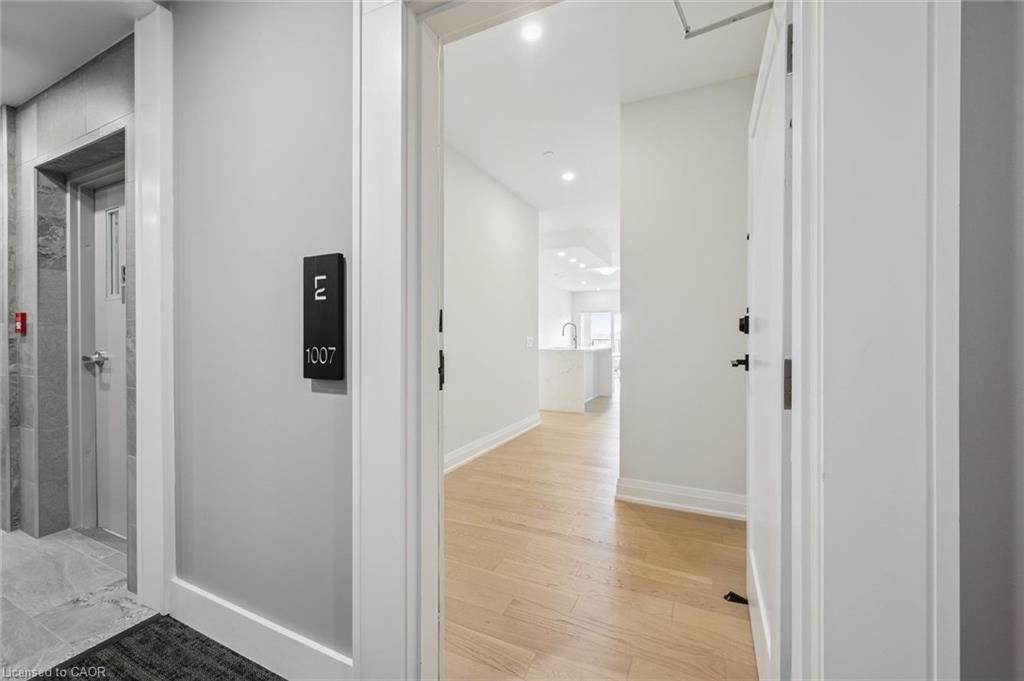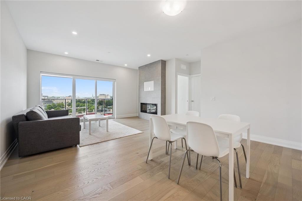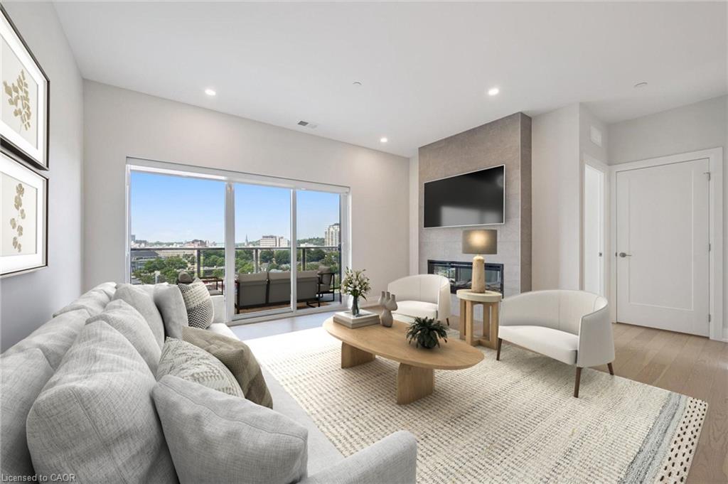 This exceptional and spacious high-ceiling suite on the 10th floor offers 2 bedrooms, 2 bathrooms with a stunning view of the River, and just steps from Downtown Guelph. The open-concept layout features luxury finishes, a gourmet kitchen ideal for everyday living and entertaining. The principal bedroom includes a luxurious en-suite, and walk-in closet. Thoughtful upgrades include enhanced lighting, a waterfall-edge island, and premium flooring throughout. The suite included LED under-cabinet lighting, soft-close drawers, high-end stainless-steel appliances, a spacious pantry, and a secured underground parking space for your comfort and peace of mind. Residents enjoy first-class amenities, including a fitness centre, both 1st floor and 4th floor social lounges, guest suite, golf simulator, outdoor terrace with BBQs, and secured bike rooms on all parking levels. Steps away from restaurants, cafés, shops, Farmer's Market, the VIA Rail/ GO train and bus stations, and within easy access to riverside trails. A truly elevated lifestyle awaits.