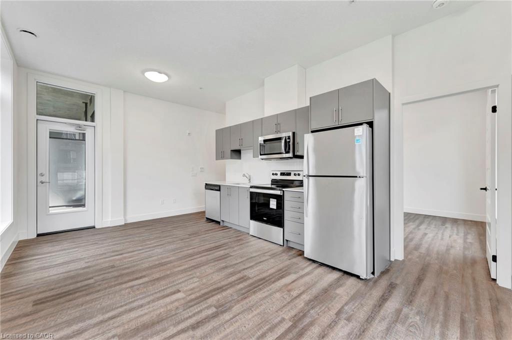 Welcome to your ideal urban retreat, perfectly situated in the heart of Uptown Waterloo. This beautifully designed 2-bedroom, 1-bathroom condo offers the perfect blend of style, comfort, and unbeatable location – ideal for professionals, students, or investors looking to be at the center of it all. Step inside and be greeted by luxury vinyl plank flooring that flows seamlessly throughout the space, creating a modern and cohesive feel. Large, bright windows flood the unit with natural light, creating a warm, welcoming ambiance. The kitchen is a true highlight, featuring sleek quartz countertops that add both beauty and durability to your culinary experience. Both bedrooms are equipped with walk in closets, providing ample storage and comfort. Enjoy your morning coffee or unwind after a long day on your private ground-level balcony, offering a cozy outdoor escape. This location simply can’t be beat. Just minutes from the University of Waterloo, Wilfrid Laurier University, and steps to the LRT, you’ll enjoy quick, car-free access to Downtown Kitchener, local restaurants, boutique shops, the hospital, and Spur Line Trail. Whether you're commuting, grabbing a bite, or enjoying the outdoors, everything you need is right at your doorstep. Don’t miss this rare opportunity to own a stylish condo in one of Waterloo Region’s most sought-after communities.