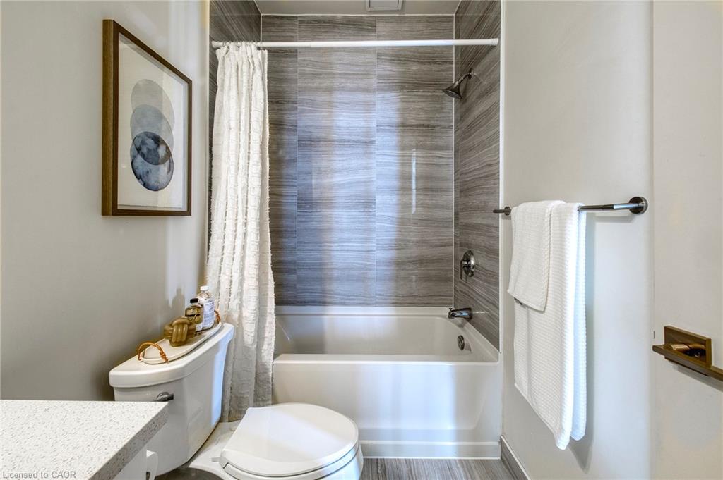 Just the right combination of privacy, space, access, and amenities delivered here! This 593-square-foot condo is complete with UNDERGROUND PARKING, private outdoor terrace with street-level lockable gate and second entrance into the condo unit, and full storage locker. Located nearby Google' KW HQ, Communitech, Catalyst137, Grand River Hospital, UW's School of Pharmacy, and McMaster's School of Medicine, this Midtown location is adjacent to many major institutions and employers. With a separate entrance from the condo to the private gated terrace, enjoy convenient access to explore the city. Bus stop next door, and LRT stop down the street at GRH. At home, enjoy the warmer weather from your terrace with friends, neighbours, or colleagues! Inside the condo, notice modern finishes such as quartz countertops, extended-to-the-ceiling kitchen cabinets, stainless-steel appliances, custom tiled backsplash, vinyl plank flooring(2026) in the primary bedroom, and dimmable lighting. Customize the mood lighting in the living room, bedroom, and bathroom! This one-bedroom layout offers a 4-piece bathroom with tub-shower