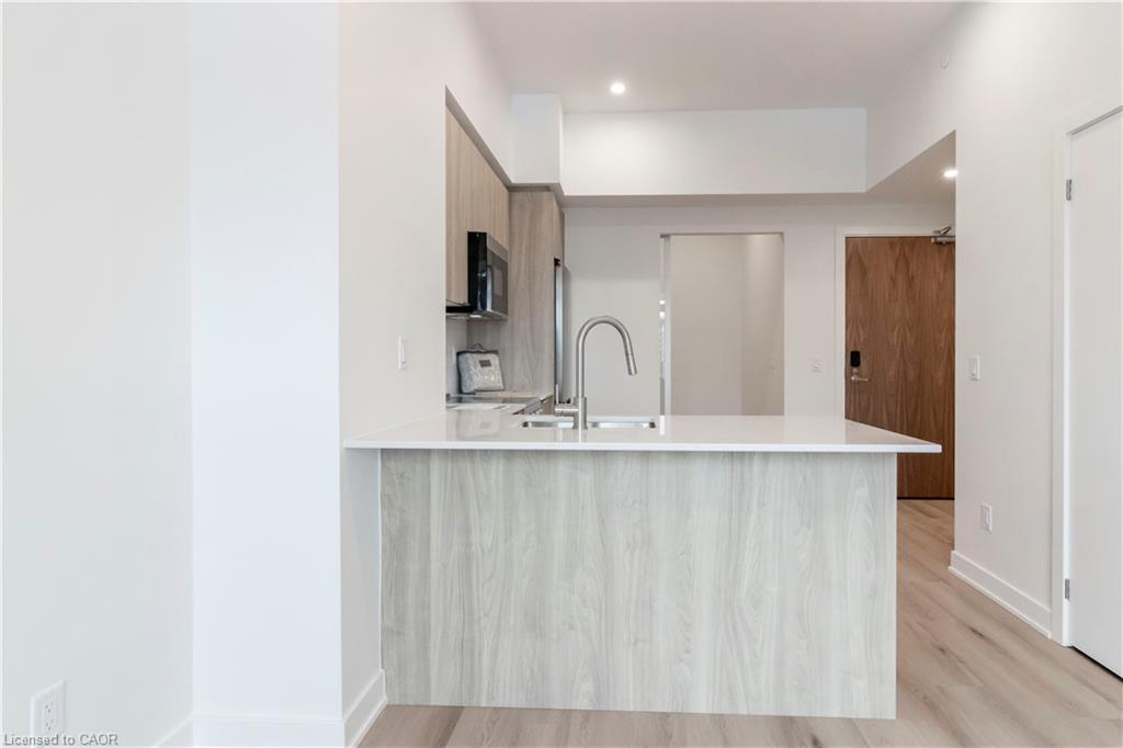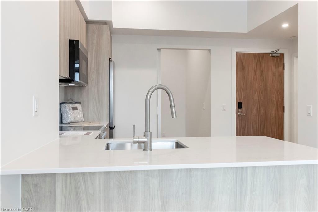 Newly completed and thoughtfully upgraded, Suite 1014 offers a refined 1-Bedroom + Den layout designed for modern professionals. Featuring 561 sq. ft. of interior living space plus a private balcony, this residence combines efficient design with elevated finishes. The open living and dining area is anchored by a contemporary kitchen with quartz countertops and stainless-steel appliances. A full glass-enclosed den provides an ideal work-from-home environment, offering both privacy and comfort. Additional conveniences include in-suite laundry, dedicated parking, and a private storage locker. Residents enjoy an extensive collection of premium lifestyle amenities, including a fitness centre, Peloton studio, yoga and outdoor training deck, sauna, spa-inspired hydro facilities, bowling lounge, and more. The community sits steps from major employment hubs, rapid transit, restaurants, and everyday conveniences—placing work, leisure, and connectivity within effortless reach.