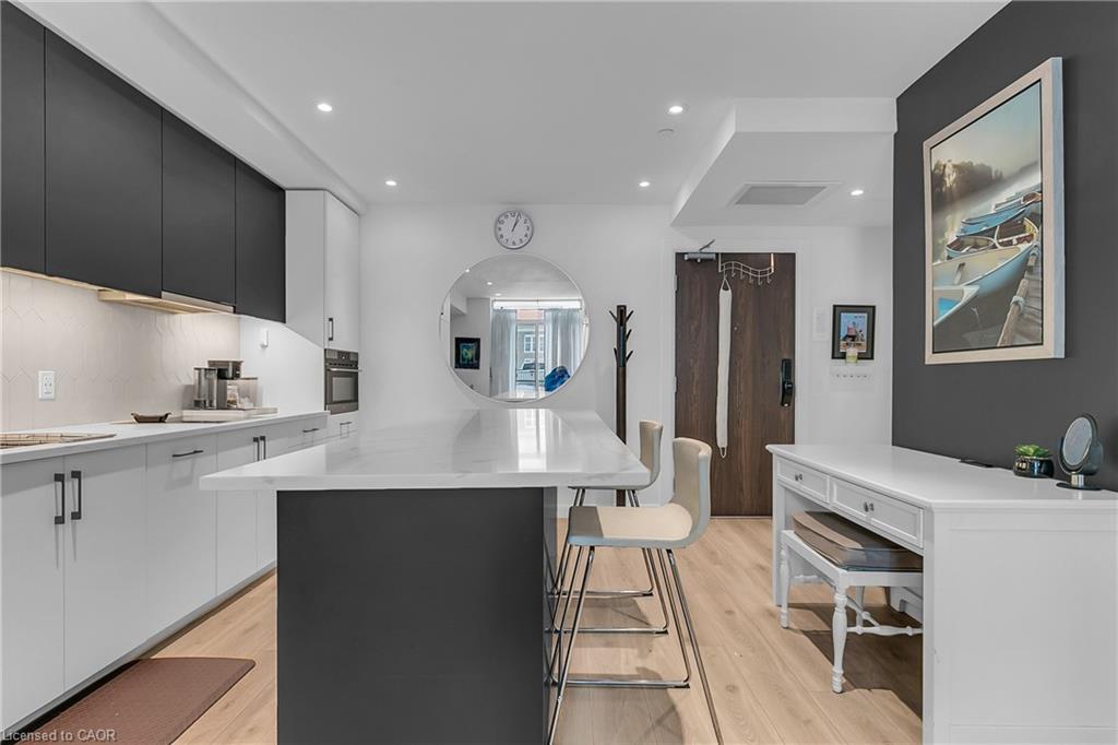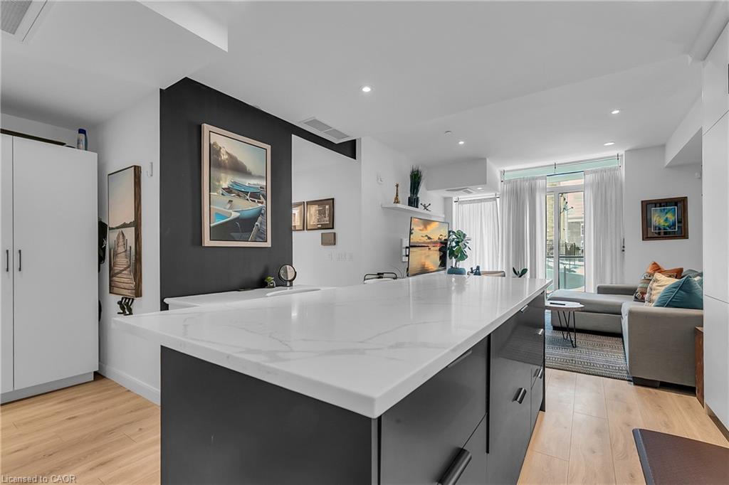 Rare opportunity to own a 2-bedroom, 2-bathroom unit in The Bright Building offering 928 sq. ft. of modern living space plus a spacious 195 sq.ft. balcony. This thoughtfully designed suite features an open-concept layout, sleek kitchen, and a private primary suite. Enjoy top-tier amenities, including a party room, library, sauna, outdoor terrace with lounge areas, bike storage, and storage locker. Ideally located in Kitchener’s Innovation District, steps from the LRT, Google, and vibrant shops and dining. Don’t miss this stylish urban retreat!