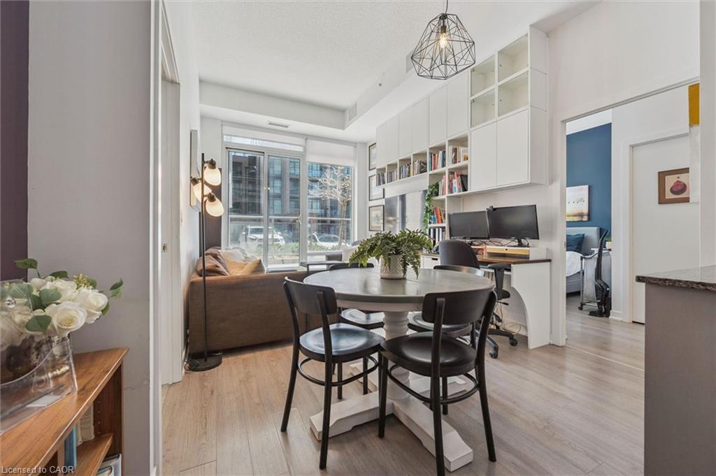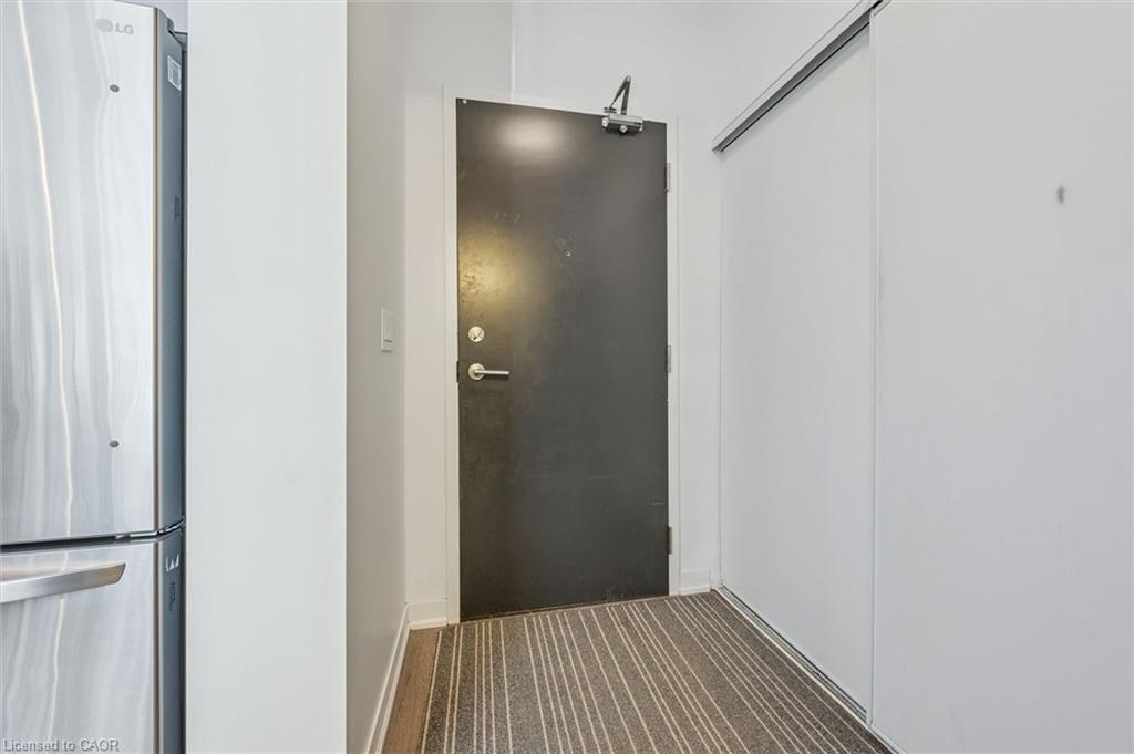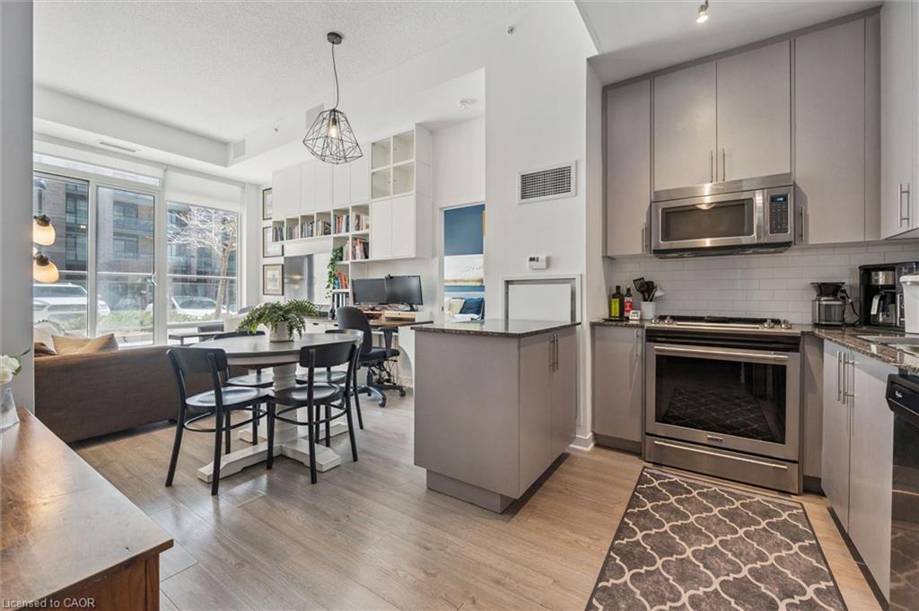Don’t miss this trendy and upgraded 2-bedroom, 2-bathroom condo in the highly sought-after 85 Duke Street West building, located in the heart of Downtown Kitchener. Offering a functional floor plan with a carefully designed built in wall unit (2022), this bright corner suite features 10-foot ceilings, elegant Terra Wood flooring throughout, added storage organization (2020), like new appliances and lighting (2022-2024) and an oversized terrace-style balcony perfect for relaxing or entertaining. This stylish space is ideal for first time home buyers, downsizers and investors alike. The primary bedroom offers a walk-in closet, 4pc bath and for added privacy each bedroom features safe and sound solid doors (2023). This unit also includes ensuite laundry, a storage locker and owned underground parking, ensuring your vehicle stays warm and protected year-round. Situated in one of the region’s most convenient locations with a Walk Score of 97, you’re directly across from the LRT station and just minutes to downtown Kitchener’s shops, restaurants, City Hall and various other amenities. Commuting is effortless with quick access to Victoria Street, the Expressway, and Highway 401, and only 25 minutes to Guelph, 15 minutes to Cambridge, and 5 minutes to Waterloo. Residents enjoy exceptional building amenities, including 24-hour concierge service and a party room with demonstration kitchen that opens to a beautifully furnished outdoor patio, perfect for hosting friends and family. Residents can also enjoy the Gym at 55 Duke, along with a enclosed dog run for your fur babies. Whether you're looking for a place to call home or a smart addition to your investment portfolio, this stunning condo checks all the boxes. Come see it for yourself—you won’t be disappointed.