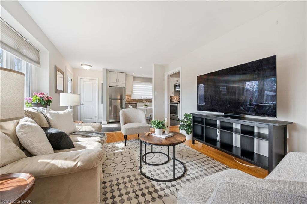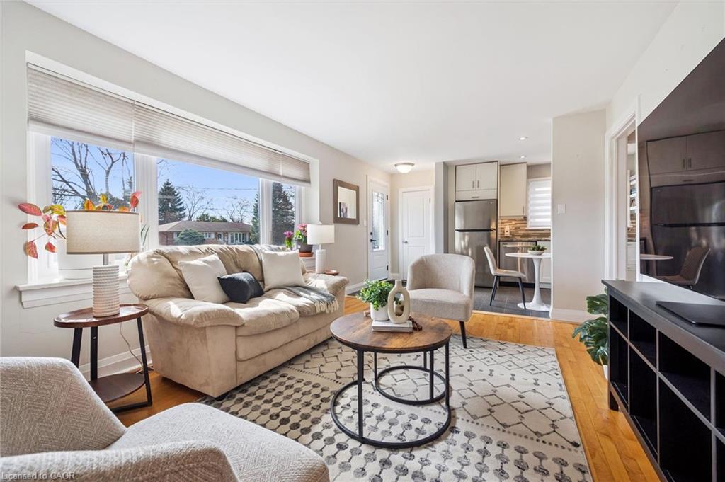 This charming red-brick 1 1/2-storey home has been tastefully updated throughout and is set in a family-friendly neighbourhood just steps to schools, parks, and everyday amenities. Inside, the home feels bright and welcoming, with plenty of natural light streaming through new windows (2025) and hardwood flooring throughout the main living space. The beautifully updated kitchen (2017) features an open layout to the living room, along with thoughtfully designed cabinetry, ample storage, and stainless steel appliances. The 4-piece bathroom was also updated in 2017. New carpet on the stairs and second level (2024) adds a fresh, comfortable feel upstairs. The finished basement, complete with pot lights, offers the extra space everyone is looking for - perfect for a rec room, home office, or additional storage. Out back, enjoy the spacious 51 x 111 ft lot with a covered deck that’s ideal for relaxing or entertaining in the warmer months. A detached 16' x 24' (1.5 car) garage, built in 2013, provides plenty of room for parking and storage. The property also features 3 driveway spaces. This is the kind of home that’s easy to settle into - updated where it matters, full of character, and in a location that makes everyday living simple. Book your private showing today! Front & Back Door (2026), Windows (2025), Parging Repair (2025), Carpet (2024), Furnace (5 Yrs), Kitchen (2017), Bathroom (2017), Detached Garage (2013)
