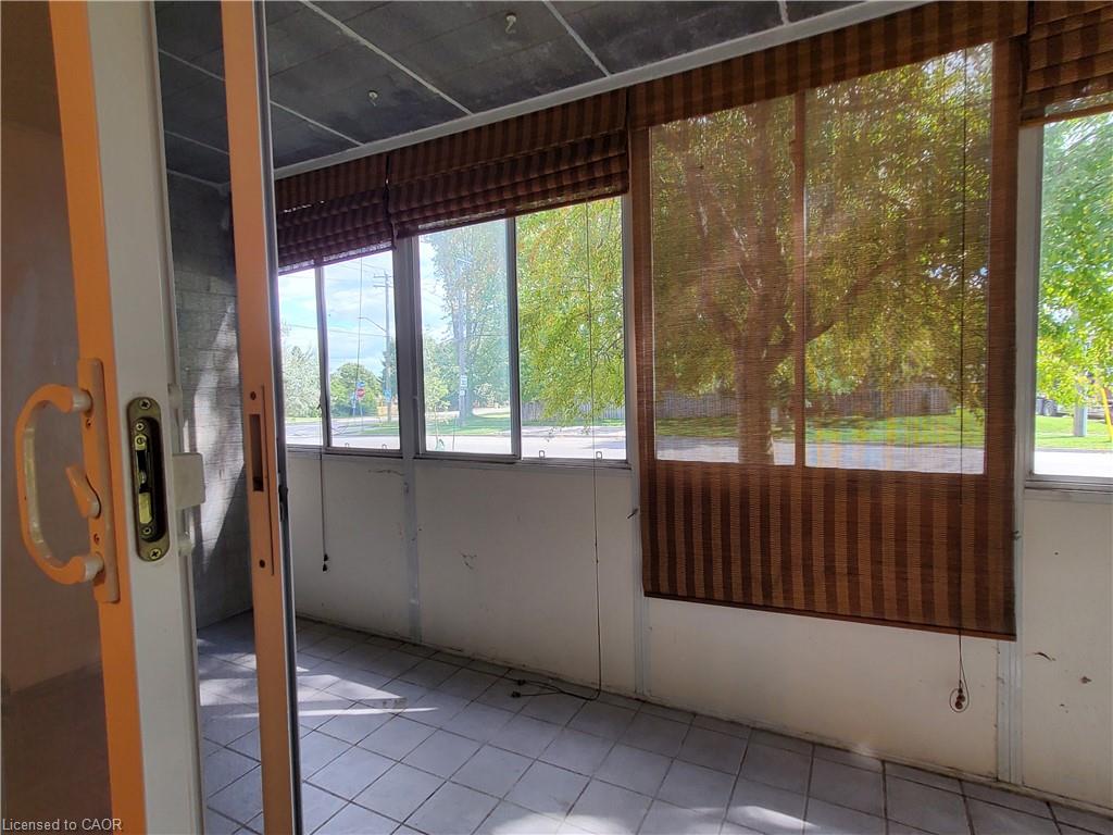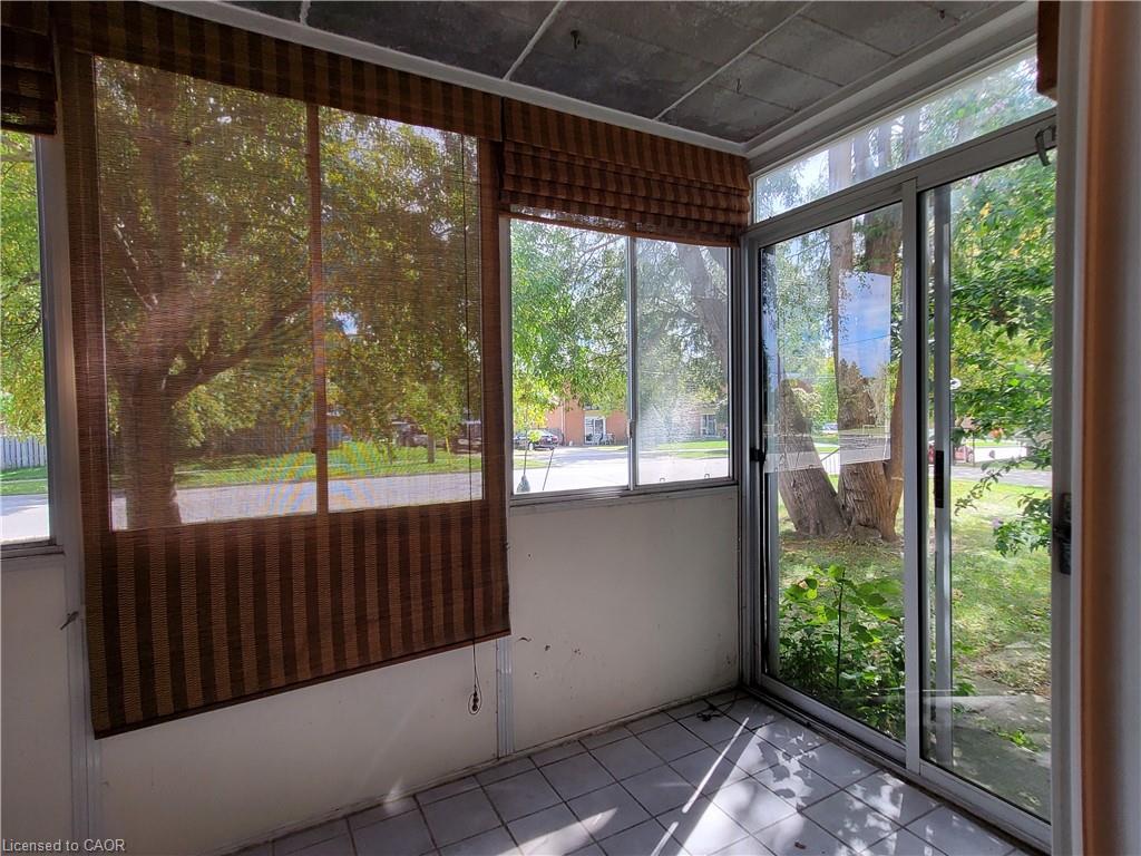 Rare to find a 3 bedroom unit on the ground level with Sunroom and 2 entrances. Living in this unit gives the feeling of living in the house. Very spacious living room with sliding door to the Sunroom and exit to the lawn and garden. Perfect for enjoying the outdoors and gardening. Freshly painted home has hardwood throughout. Solid concrete walls for soundproofing. Ceramic flooring and walls in both washrooms and kitchen. Low property tax and condo fee, which includes heat, electricity, utilities, building insurance and more services.A larger walk-in storage room conveniently located inside the unit. Playgrounds close by make it ideal for young families with kids. Short walk to the ION transit station perfect for retired. Close to shopping and on the bus route. Low property tax makes this unit attractive for investors.