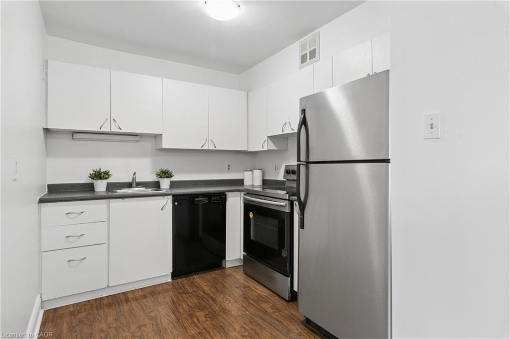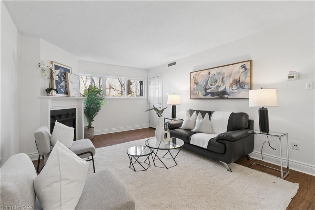 Welcome to 15 Hofstetter Ave in Kitchener, a beautiful corner unit condo that blends comfort, convenience, and understated charm. As you arrive, you will immediately appreciate the ease of access, with the unit ideally situated near the side entrance, perfect for effortlessly bringing in groceries, and a parking spot conveniently located just steps away. Step inside and you are greeted by a bright, airy atmosphere that flows seamlessly throughout the home. The living space is both inviting and refined, anchored by a charming wood-burning fireplace that creates a warm, cozy focal point, an ideal setting for quiet evenings and relaxed nights in. The kitchen is thoughtfully equipped with stainless steel appliances, complemented by fresh paint throughout the unit, giving the entire home a crisp, modern feel. This well-designed layout offers two spacious bedrooms and two bathrooms. The primary suite serves as a private retreat, complete with its own 2-piece ensuite for added comfort and convenience. Just off the living room, step out onto your own private balcony, an outdoor escape that is perfect for morning coffee or unwinding at the end of the day. Perfectly located, this home offers quick access to the 401 and expressway, while also being within walking distance to everything you need along Fairway Road & Weber Street, including shopping, restaurants, grocery stores, and the mall. Adding to its appeal, the building is located directly across from a park, offering a scenic and tranquil backdrop to your everyday living. This is a rare opportunity to enjoy low-maintenance condo living without compromising on comfort, style, or location. Book your private showing today and experience everything this exceptional home has to offer.