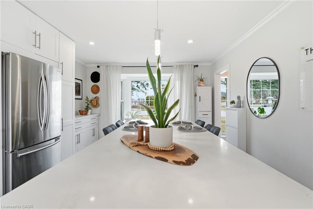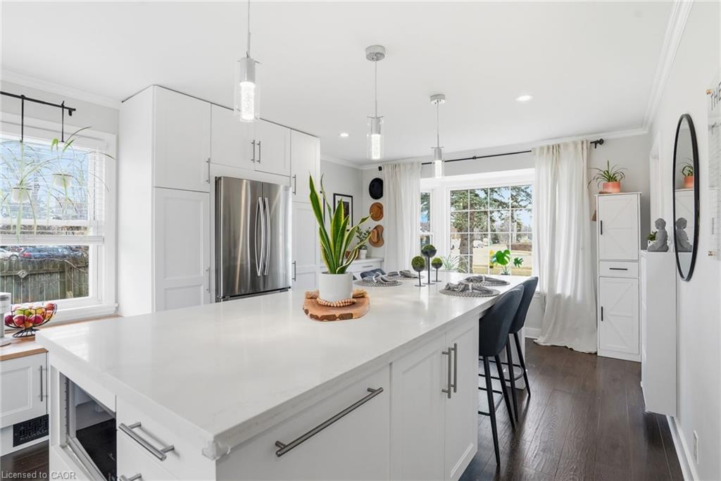 There’s a feeling you get the moment you step inside 106 Laurel Street, the kind of warmth that tells you you’re home. A charming brick house on a spacious corner lot in Preston North; the kind of place that immediately feels welcoming, and a layout that makes everyday living easy and comfortable. The main floor offers a bright, open flow, anchored by a cozy gas fireplace and an inviting show-stopping kitchen featuring a 10-foot quartz island, where family and friends naturally gather. It’s a space made for morning coffee, shared meals, and homework. The simple moments that make a house feel like home. Upstairs, two comfortable bedrooms and an updated washroom create a peaceful retreat. The lower level adds flexibility with a rec room and an additional bedroom that works well as a guest room, office, or hobby space. Step outside to a fully fenced yard with a raised deck and lower patio area, perfect for summer evenings, barbecues, or watching kids and pets play, with room to grow, garden, or simply enjoy the outdoors. The neighbourhood adds to the appeal. You’re just a short walk from the Speed River, Linear Trail, and Riverside Park, offering beautiful natural spaces for walking, biking, and unwinding. King Street’s shops, restaurants, and Dairy Queen are close by, making errands and treats an easy stroll. 106 Laurel is warm, comfortable, and ready to welcome you home. Don’t be TOO LATE*! *REG TM. RSA.