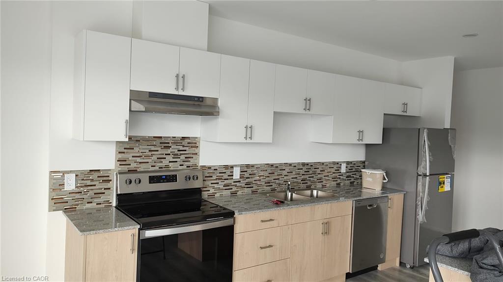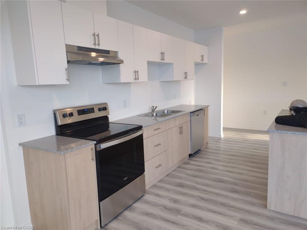 Located in Guelph's highly desirable west-end, this exceptional condominium at 1098 Paisley Rd offers a perfect blend of comfort, space, and convenience within a family-friendly and high-demand neighborhood, surrounded by major amenities including Costco, Zehrs, restaurants, banks, and shopping plazas, with quick access to the Hanlon Expressway and approximately 15 minutes to Highway 401, along with nearby public transit and close proximity to the University of Guelph, as well as convenient connectivity to the University of Waterloo and Wilfrid Laurier University, while also being steps to parks, trails, and green spaces. This beautifully designed corner unit is one of the largest in the building, offering approximately 1,419 sq. ft. of interior living space plus a 158 sq. ft. private balcony, totaling 1,577 sq. ft., and features a spacious and functional layout with 3 generously sized bedrooms and 2 full bathrooms, an open-concept living and dining area filled with natural light, and a modern kitchen equipped with built-in stainless steel appliances, granite countertops, and custom cabinetry, ideal for both everyday living and entertaining. The primary bedroom offers a private 3-piece ensuite, a walk-in closet, elegant laminate flooring, and floor-to-ceiling windows, while the additional two bedrooms are well-sized with large windows and share a contemporary 3-piece bathroom, complemented by the convenience of in-suite stacked laundry. Residents can enjoy a large private balcony with scenic green views, creating a perfect space for relaxation, while additional features include included appliances such as washer, dryer, oven, dishwasher, refrigerator, and blinds, with all utilities being the tenant's responsibility, and pets permitted, making this expansive and well-appointed condominium an ideal place to call home. Condominium has 1 temporary surface parking. FREE INTERNET INCLUDED IN RENT