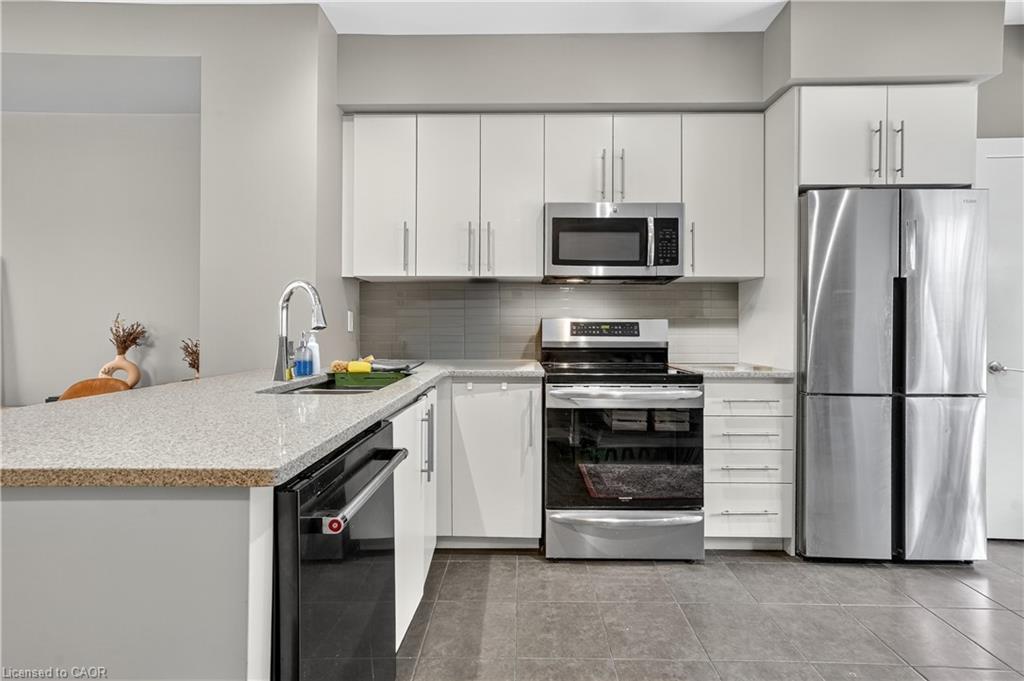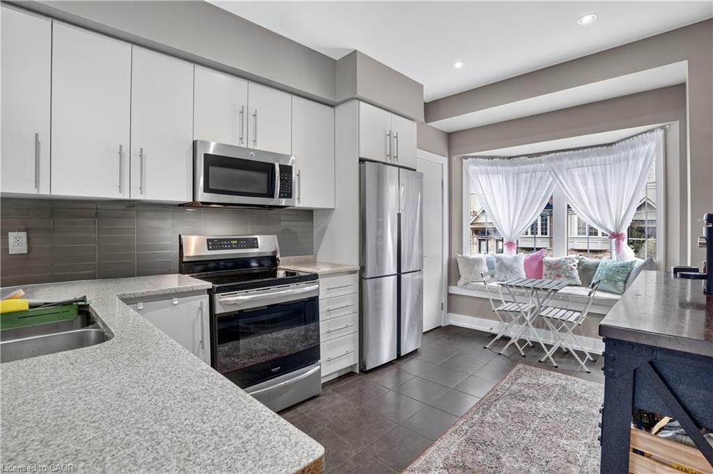 Welcome to 342 Mill Street, Unit 11 – a bright and stylish end-unit freehold townhome in a prime Kitchener location. This thoughtfully designed home features an open concept main floor with upgraded lighting, quartz countertops, and modern appliances in the kitchen, making meal prep and entertaining a breeze. This home is an end unit, so natural light pours in through the additional windows, creating a warm and inviting atmosphere throughout. Step outside to a large custom built deck perfect for summer BBQs, plus an upper balcony where you can relax with your morning coffee overlooking peaceful greenspace and a charming creek.