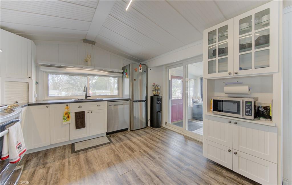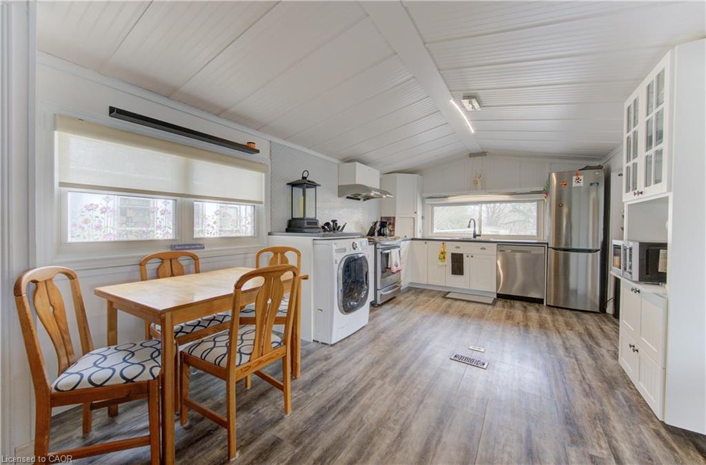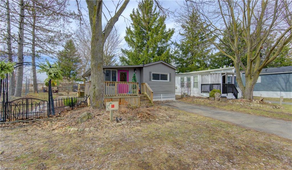 Welcome to Unit 11 in one of Waterloo's most established and beautifully maintained land-lease communities Green Acres Park! This beautifully designed modular double-wide home offers a spacious and inviting layout, perfect for modern living. At the heart of the home is a large open-concept living area that seamlessly connects the kitchen, dining, and living spaces—ideal for entertaining or enjoying everyday comfort. The thoughtfully designed floor plan includes a versatile den, perfect for a home office, media room, or cozy retreat. The expansive primary bedroom serves as a private sanctuary, featuring generous proportions and ample closet space. With its wide layout, abundant natural light, and flexible living spaces, this home combines functionality and style, making it an excellent choice for families, downsizers, or anyone seeking comfort without compromise. Green Acre Park features a community swimming pool, a games room, a catch and release fishing pond for plenty of outdoor activities. Enjoy resort-style amenities, peaceful surroundings, and low yearly carrying costs. Annual Park fees approx. $9,800-$11,200 + HST includes water & taxes (park closed Jan & Feb). Park approval required for all purchasers. Enjoy the comforts of 10-month seasonal living (park closed Jan and Feb) with a turnkey home, surrounded by nature, old growth trees and a spacious lot. Call and book your appointment today!!
