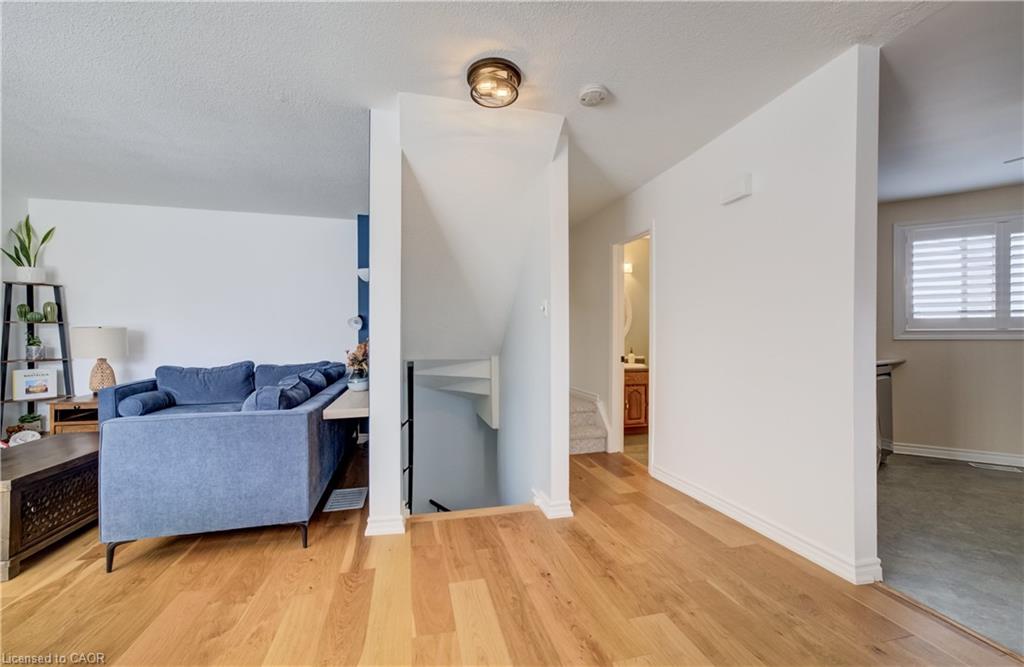 Upstairs you’ll find three generously sized bedrooms and a full 4-piece bathroom, including a primary bedroom with a modern ceiling fan. The home has been thoughtfully updated with engineered hardwood flooring on the main level, luxury vinyl flooring on the upper level, upgraded front entry flooring and closet door, updated light fixtures and door handles throughout, and freshly patched and painted walls in the past two years.