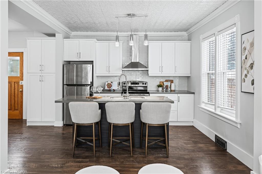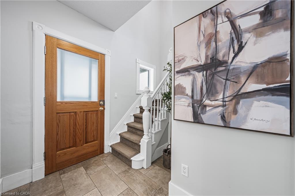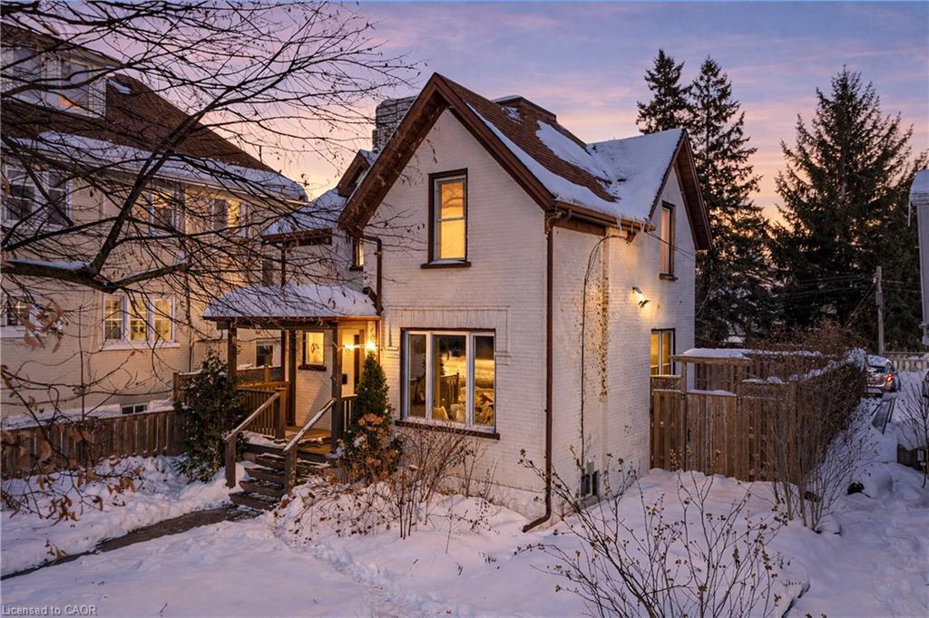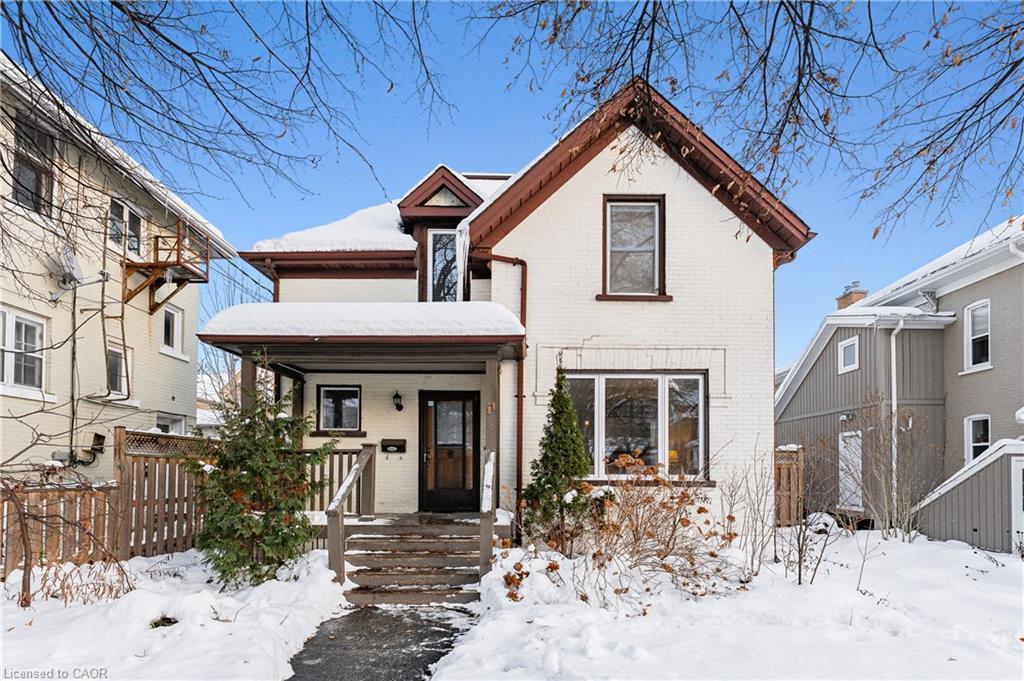 A rare opportunity in Kitchener’s historic Victoria Park neighbourhood-this beautifully restored century home has been fully updated from top to bottom while preserving the charm and character the area is known for. Located in the heart of the Innovation District, this home offers modern finishes, thoughtful design, and an exceptional walkable lifestyle. The open-concept main floor features 9-foot ceilings, laminate flooring throughout, and a bright living room highlighted by an exposed brick feature wall. The updated eat-in kitchen offers quartz countertops, a large centre island, stainless steel appliances, tile backsplash, and a spacious integrated dining area, making it ideal for both everyday living and entertaining. A convenient 2-piece powder room completes the main level. The upper level includes a versatile media nook or home office area, two spacious bedrooms, and a spa-like 4-piece bathroom with a separate soaking tub, tiled glass shower enclosure, and rain shower fixture. The primary bedroom features dual closets, including a walk-in with custom built-ins and a sliding barn door. Outside, the fully fenced backyard offers a large deck and shed, providing functional outdoor space. Additional highlights include 2 parking spaces and SGA-1 zoning, offering added flexibility for future use. Unbeatable location-minutes to the Victoria Park ION LRT Station and Downtown Kitchener. Walk to Victoria Park, Google, The Tannery, University of Waterloo Health Sciences Campus, School of Pharmacy, D2L, Deloitte, restaurants, cafés, shopping, and transit. Close to Grand River Hospital, St. Mary’s Hospital, and the Kitchener GO Station, with easy access to festivals, cultural events, and everything Downtown Kitchener has to offer. A rare blend of historic charm and modern living in one of Kitchener’s most sought-after neighbourhoods. An excellent opportunity to live-in or invest-perfect for owner-occupiers/those seeking a well-located property in the Innovation District.