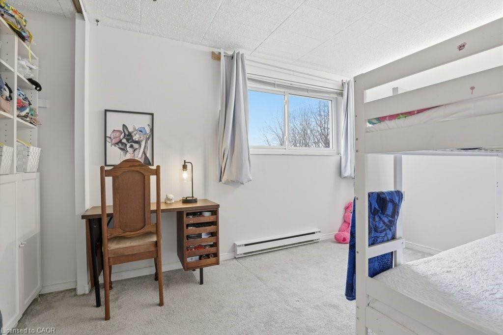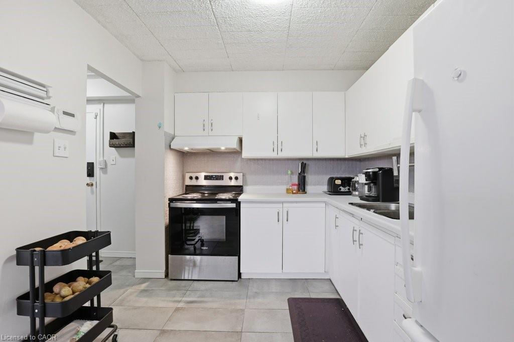 Stop renting and start building equity with this rare, move-in-ready 3-bedroom ground-floor condo—the perfect home for families seeking space without the hefty price tag. This bright and welcoming unit features a spacious open-concept layout that feels like home. Stylish modern updates, a crisp white kitchen, and three generous bedrooms provide the flexibility you need for a growing family! Forget the hassle of elevators; enjoy main-floor convenience with a walk-out to a private patio overlooking a quiet lawn with beautiful mature trees. Just perfect for sitting in the sun and watching the kids play (or quietly reading a book!) Best of all, your monthly budgeting is made simple with an all-inclusive condo fee that covers heat, hydro, and water—no more surprise utility bills! Situated on a peaceful street just minutes from the expressway, groceries, and shopping, this home combines a tranquil setting with ultimate urban convenience. Complete with one dedicated parking space and in excellent condition throughout, this is an incredible opportunity to own a large, stress-free home in a prime location. Move in and enjoy the peace of mind you deserve.