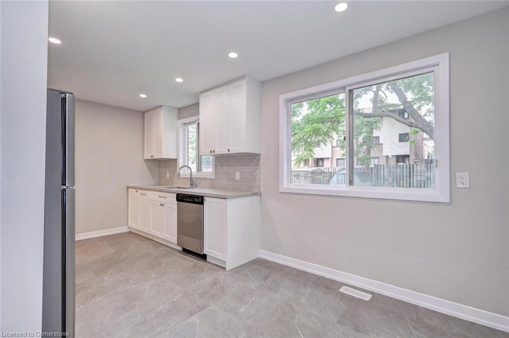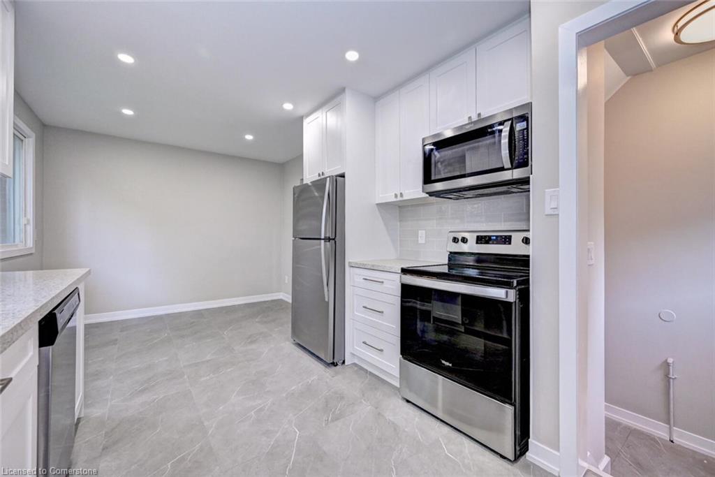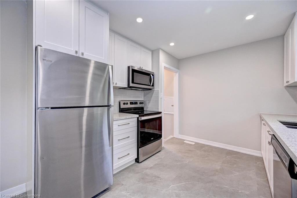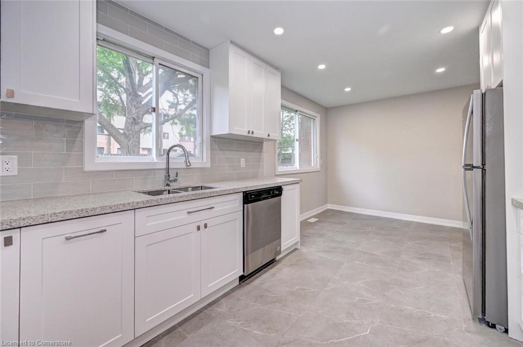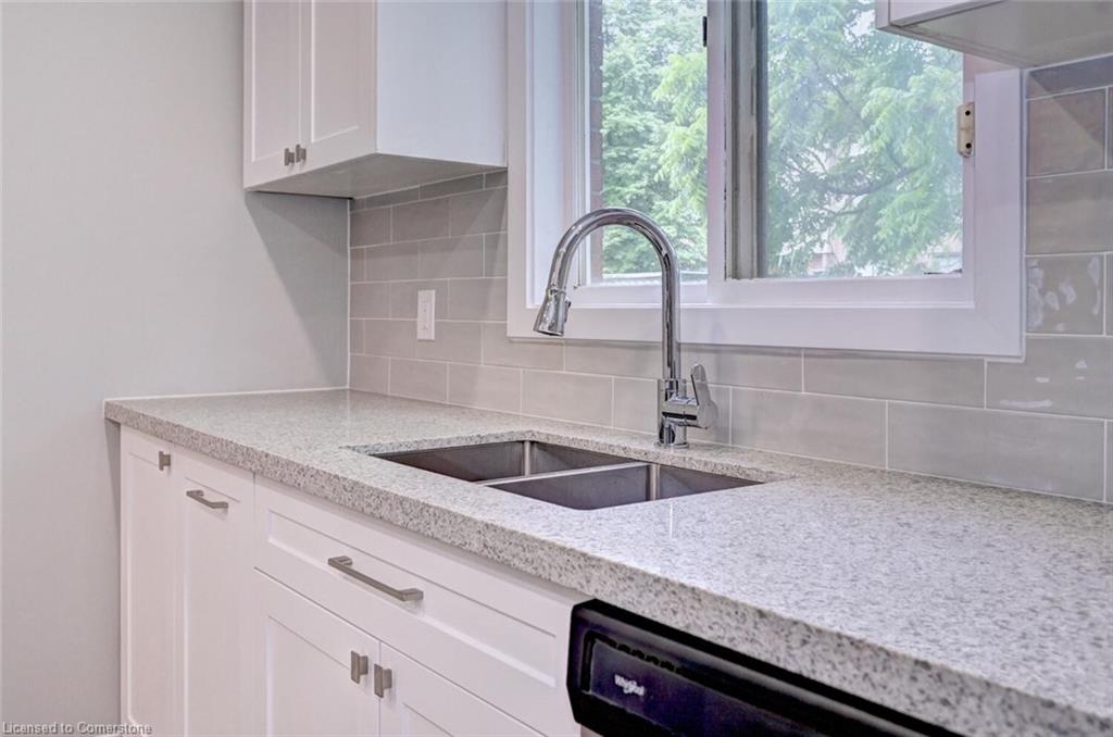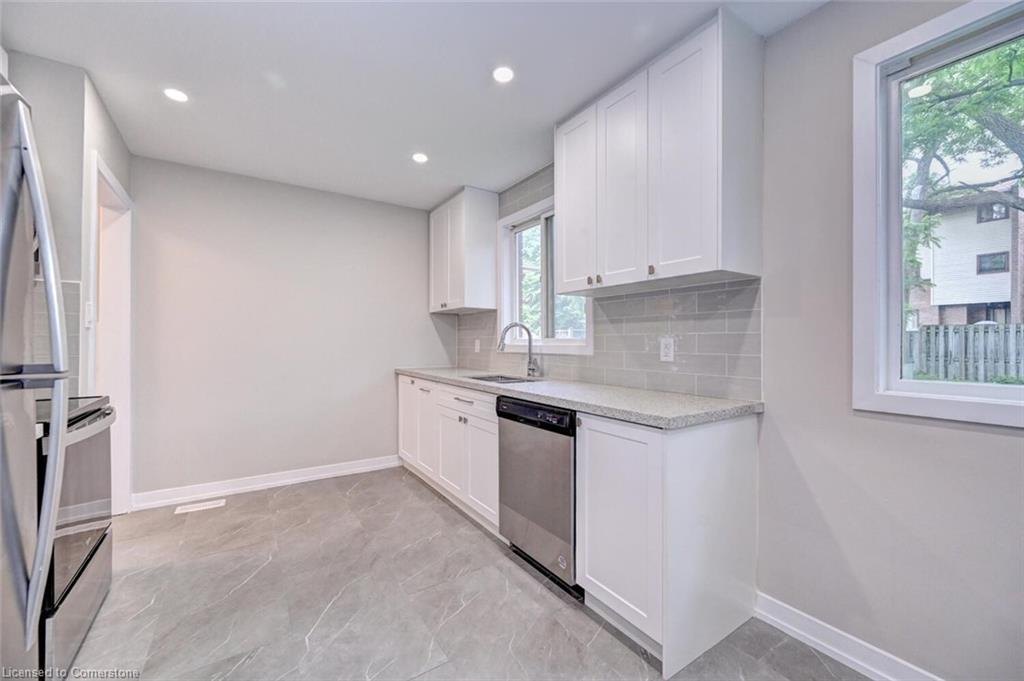 Tastefully updated in 2022, this home offers modern finishes, a welcoming layout, and a carpet-free interior perfect for those seeking comfort and convenience. Available September 1, 2025, it's ready for you to move in and enjoy. The kitchen was fully remodelled with white cabinets extended to the ceiling for extra storage, elegant quartz countertops, a glass backsplash, and stainless-steel appliances. Pot lights, an undermount sink, and quality finishes give it an upscale touch. The bathroom was completely renovated with quartz counters, new fixtures, and a polished, modern design. Additional updates include refinished hardwood floors, new doors, trim, handles, closet organizers, and updated light fixtures. The home also features a new (2022) electrical panel, plugs, and light switches. The large backyard, surrounded by lush greenery, is ideal for relaxing or entertaining, and a side entrance offers added convenience. Professionally managed for peace of mind.