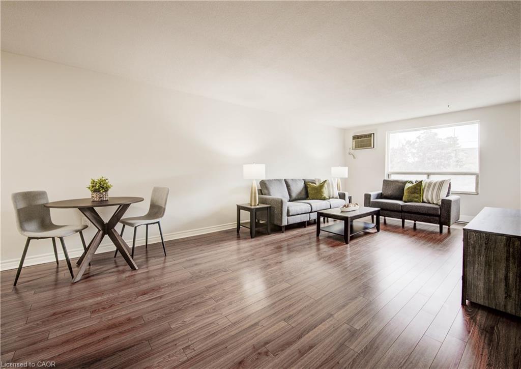 Wow! Nestled in bustling downtown Kitchener, this well-maintained condo offers the dual advantage of a central location and excellent amenities. Notably, the unit comes with its own designated underground parking spot for only $50.00/month. Located just a short stroll away from the LRT, you'll have easy access to the University of Waterloo, Laurier University and Conestoga College. Upon entering the unit, you are immediately welcomed by a wealth of bright, natural light that illuminates the space, creating a warm and inviting atmosphere. The condo boasts a carpet-free environment, enhancing the contemporary appeal of the space while also providing easy maintenance. The living room is both spacious and practical, with the kitchen easily accessible for convenient meal preparation and entertaining. The walk-out balcony offers a private and cosy retreat making it a perfect place to enjoy a cool beverage before going off to bed. A well appointed 4 piece bathroom ensures getting ready for the day will be a breeze. The building itself offers residents an array of amenities designed to improve your day-to-day living experience. Keep fit in the on-site fitness room or delve into a good book in the library. This condo is ideally positioned to enjoy the best of downtown Kitchener. The city's heart is not just a place to live but a vibrant community teeming with cultural experiences and conveniences. Grab fresh produce and local goods at the Kitchener Farmers Market, or take an evening stroll through Victoria Park. Explore King Street, with its broad range of shops and restaurants where you can experience diverse cuisines, browse through unique shops, and even catch a live performance at Centre in the Square or the Conrad Centre for the Performing Arts. You’re just a short walk from the LRT making getting around KW effortless. Secured underground parking available for $50/month