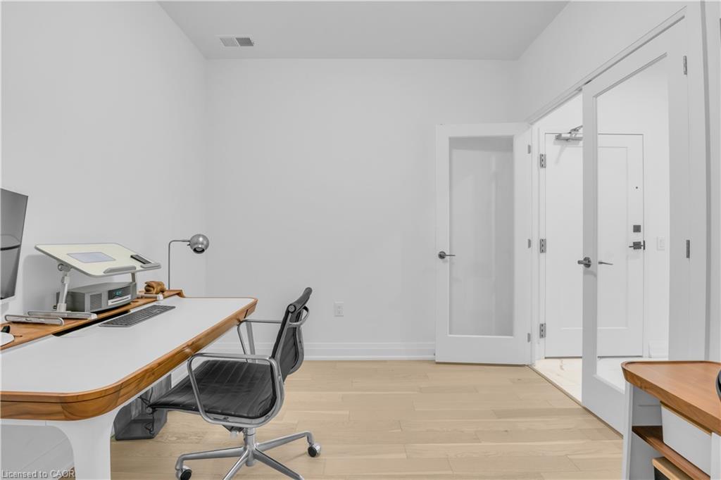A welcoming foyer with ample closet storage leads to a private den enclosed with French doors, ideal as a dedicated home office, reading retreat, or quiet lounge. This flexible space adds functionality while maintaining separation from the main living areas.