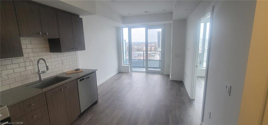 Amazing (1 Br + Den) on 11th Floor at Station Park's Union Tower-1. Enjoy beautiful views of Uptown Waterloo in an expansive urban living setting. Spacious den offers a space that could be used for work/study/play. Upgrades: gourmet kitchen with soft close drawers, zebra blinds/pot lights. Includes: storage locker, mobile-enabled features garage parking space, smart-suite entry, wifi-enabled hotspots throughout all common areas, fast-charge ev parking, secure parcel room enabled with electronic delivery system, 9 feet ceilings, light vinyl wide plank flooring throughout. Kitchen includes built-in stainless-steel appliances, quartz countertops and contemporary tile backsplash. Walking distance to Google, Go Train Station, Grand River hospital, coffeeshops, restaurants and retail stores. Steps away from Lrt stop (Central Station), GRT bus stops 1893/1896(route#6/7/8), and future multi-modal transit hub. 15 minutes commute to both Universities and walking distance to McMaster's School of Medicine and School of Pharmacy.
