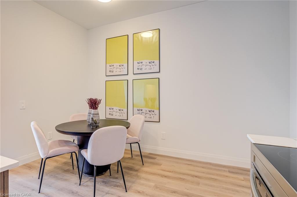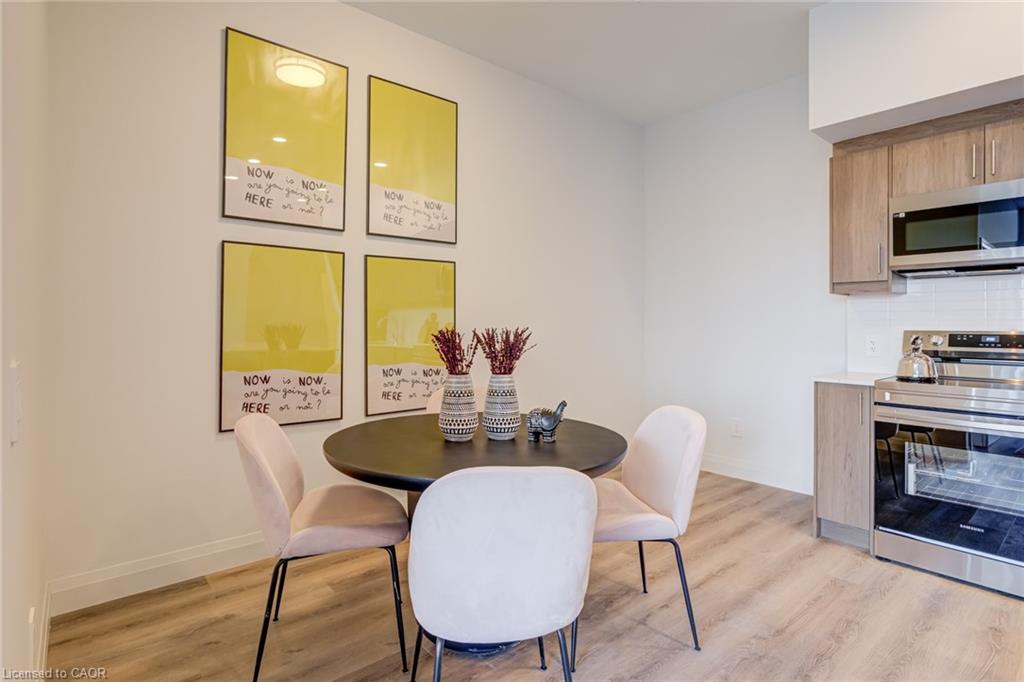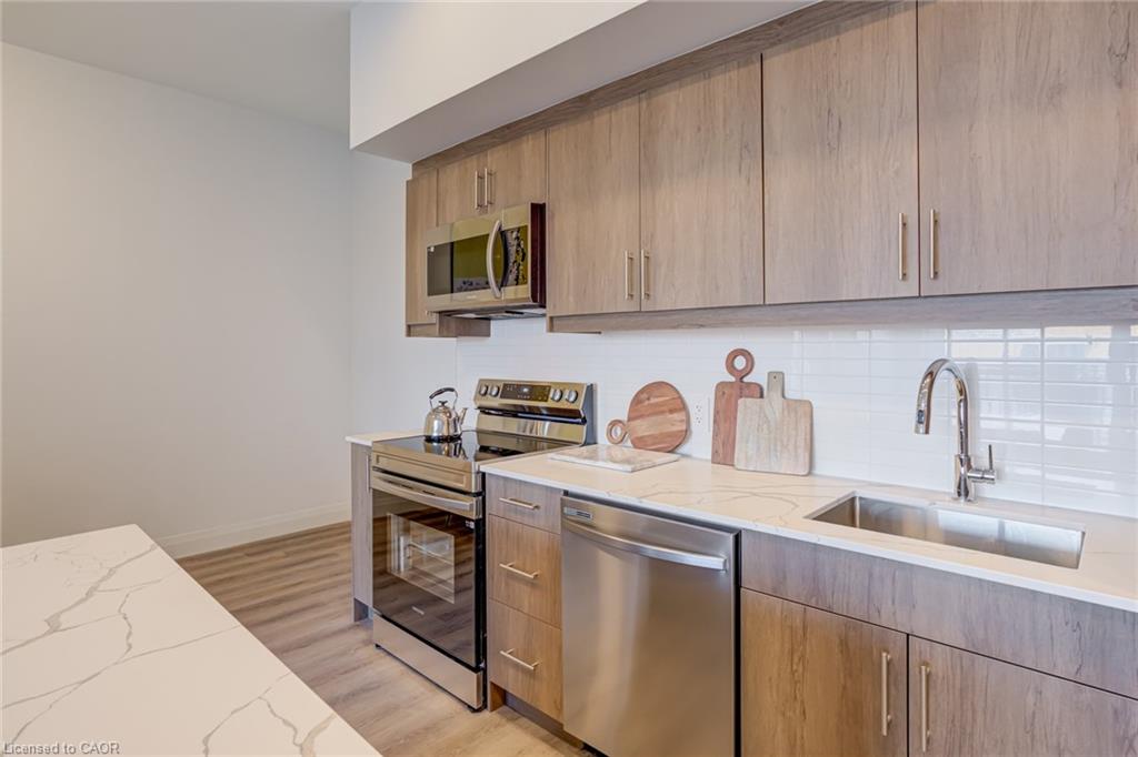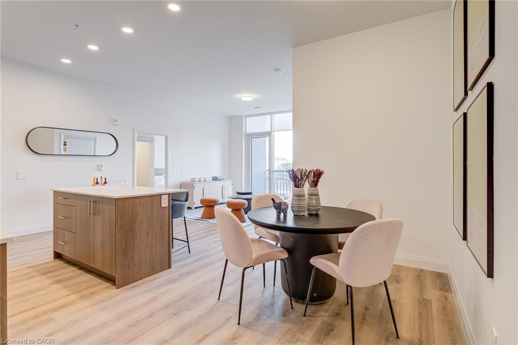 DISCOVER WEBER YARDS — Kitchener’s newest 15-storey condominium! FIRST MONTH RENT FREE ON A 13-MONTH LEASE, plus FREE STORAGE LOCKER USE FOR ONE YEAR! Suite 111 is a bright, modern 2-bedroom + den showstopper offering an impressive 1,316 sq. ft. of beautifully designed living space, featuring a functional layout and elevated finishes throughout. The sleek open-concept kitchen, living, and dining area is made for entertaining, complete with warm designer cabinetry, stunning quartz countertops, a stylish ceramic tiled backsplash, and brand new full-size stainless steel appliances. Luxury vinyl plank flooring flows seamlessly throughout the suite, complemented by soaring ceilings and oversized windows that flood the space with natural light. Both bedrooms are exceptionally spacious, each featuring a walk-in closet and easily fitting a king-size bed. A separate laundry room adds even more convenience with plenty of extra storage. Centrally located in Waterloo Region, you’ll enjoy quick access to Highway 7/8 and the 401, making commuting fast and convenient. Shopping is effortless with Fairview Park Mall just minutes away, and public transit is highly accessible with nearby bus stops. Everyday essentials are within walking distance, including Zehrs, Dollarama, Fit4Less Gym (24/7), Shoppers Drug Mart, Tim Hortons, FreshCo, and The Beer Store. Luxury building amenities include 24/7 concierge, a fitness studio, shared workspace, dog wash station, and an impressive party room complete with a full kitchen, dining area, and lounge. Parking is available at an additional cost and spaces are limited. Tenant pays utilities. Excellent credit is required and a full application must be submitted. Book your private tour today!