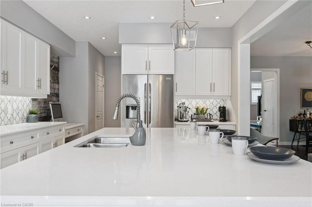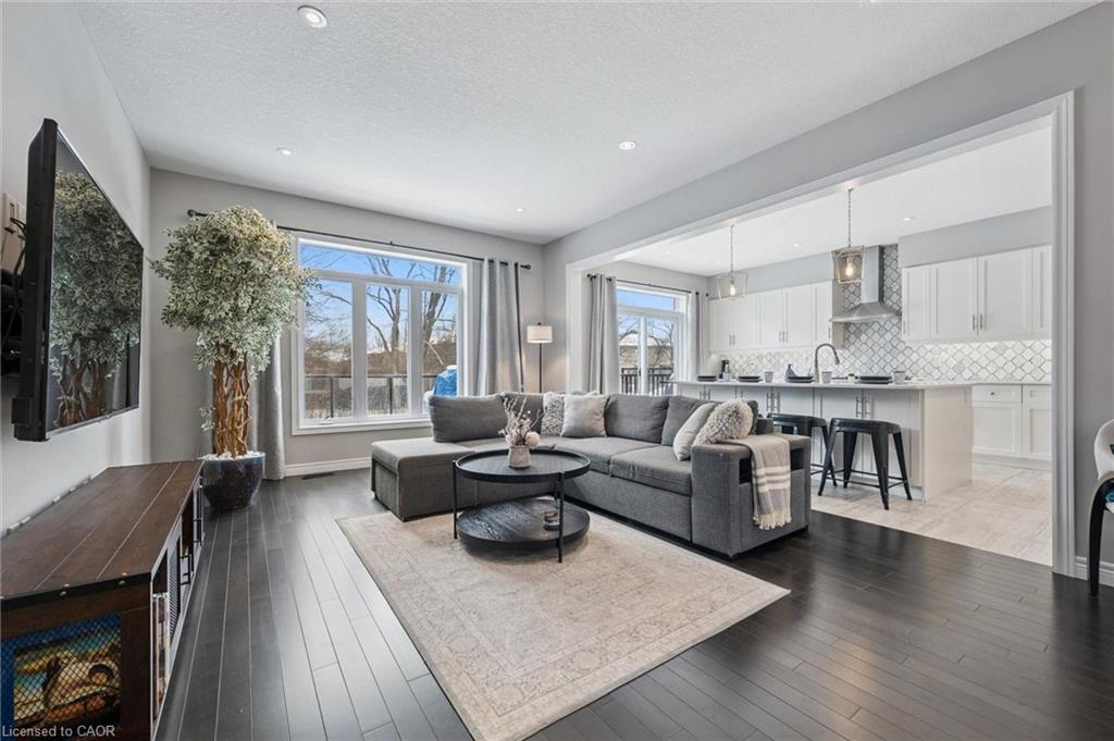 Stunning 3+1 bdrm home W/LEGAL 1-bdrm W/O bsmt apt backing onto serene greenspace! Built by award-winning Fusion Homes renowned for quality craftsmanship & innovative design, this home is ideal for multi-generational families or buyers looking to offset mtg W/rental income. Brick exterior, front porch & interlocking stone driveway & walkway create welcoming first impression. Prof. landscaped gardens, mature trees & meticulously maintained exterior shows true pride of ownership. Dream kitchen W/white cabinetry, quartz counters, S/S appliances & tile backsplash. Oversized centre island W/seating & B/I sink anchors space making it perfect for everyday living & entertaining. Sliding doors lead to deck W/glass railings offering views of greenspace & creates perfect indoor-outdoor flow. Kitchen flows seamlessly into living & dining area W/9ft ceilings, hardwood, pot lighting & windows that fill home W/natural light while showcasing serene views. Oak staircase W/wrought iron railings lead to primary bdrm with W/I closet. Ensuite W/quartz dbl vanity & frameless glass W/I shower. 2 add'l bdrms offer closet space & windows. 5pc main bath W/dbl sinks & shower/tub. 2nd-floor laundry adds to home’s thoughtful design. Legal 1-bdrm bsmt apt W/high-end finishes, kitchen W/quartz counters, S/S appliances & backsplash. Open-concept living area is bright with W/O to lower patio. Spacious bdrm, 3pc bath W/glass shower & sep laundry make this an ideal space for extended family or high-quality tenants. Relax & unwind on large upper deck, perfect for BBQs, entertaining & enjoying tranquil views. Newly landscaped fenced yard & interlock patio offer lots of space for outdoor living. Located on quiet crescent backing onto trails & around the corner from Jubilee Park. Short walk to École Arbour Vista PS, one of Guelph’s top-rated French immersion schools. Mins from Stone Rd Mall, restaurants, fitness & more. Easy access to 401! This property offers the best lifestyle, convenience &flexibility