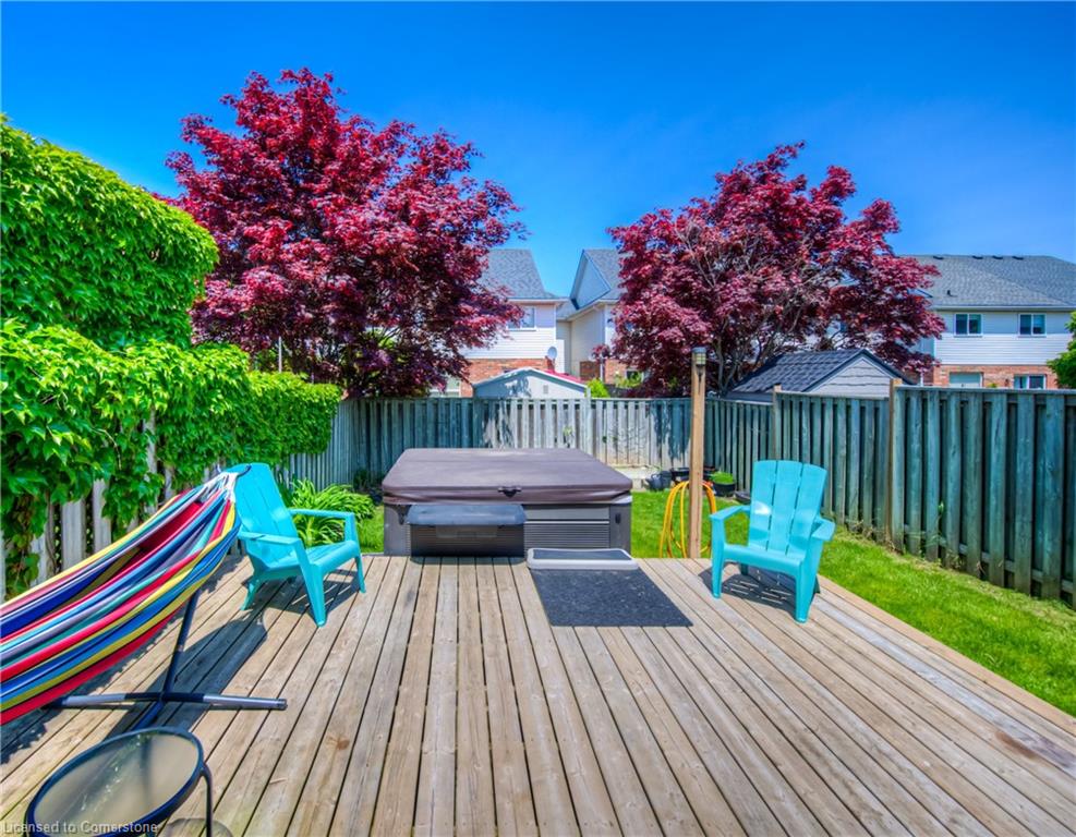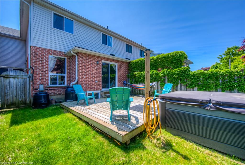 Welcome to this charming 3-bedroom, 3-bathroom home located in the beautiful town of Hespeler, ON — just minutes from parks, Hespelers picturesque downtown core, scenic trails, and with convenient access to Highway 401. The open concept, carpet-free main level features a bright living space with a walkout to the backyard, complete with a relaxing hot tub. The kitchen offers ample cabinet space and a practical eat-in countertop. Upstairs, you’ll find three spacious bedrooms, including a generous primary suite with a walk-in closet and abundant natural light. The 4-piece bathroom includes tiled flooring and under-sink storage. The finished basement adds even more living space with a rec room, a 3-piece bath, a utility room with extra storage, and a cold room. Additional features include an attached 1-car garage and a double driveway. A well-maintained home in a family-friendly neighborhood — book your showing today!