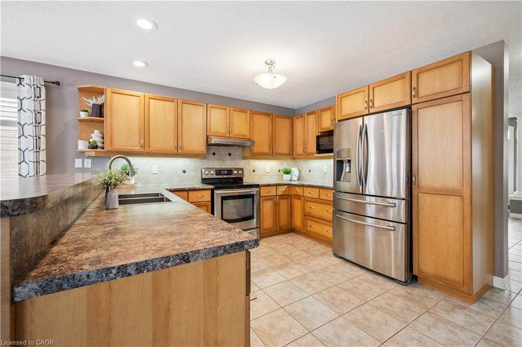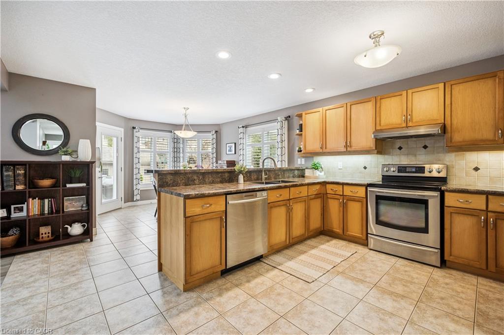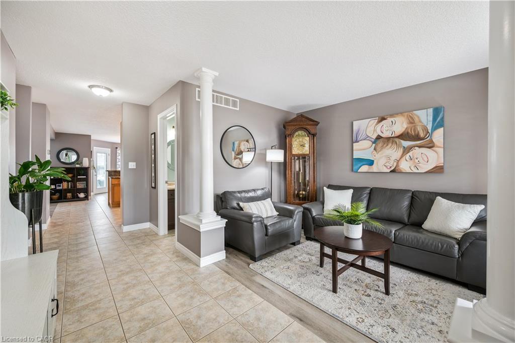 Welcome to this beautifully maintained, family-friendly home that is truly move-in ready in one of the most desirable areas in Elmira! The open-concept main floor offers exceptional versatility, featuring a bright front living area—perfect as a home office, playroom, or formal sitting space. The spacious kitchen has ample cabinetry, a convenient breakfast bar, and a large dining area that flows seamlessly into the family room with a gas fireplace—ideal for both everyday living and entertaining. A main floor laundry room and mudroom provide added convenience for busy families, while the 21-foot garage and cement driveway offer practical and functional benefits. Upstairs, you’ll find a generously sized primary bedroom featuring a walk-in closet and a beautifully renovated ensuite with double sinks and a large tiled shower. Two additional spacious bedrooms, a versatile office nook, and a full 4-piece bathroom complete this level. The fully finished basement expands your living space with an extra bedroom, a 3-piece bathroom, and a fantastic rec room complete with a gas fireplace and a stylish wet bar with new cabinetry—perfect for hosting or multigenerational living. Step outside to enjoy the oversized composite deck or unwind on the charming front porch while taking in the sunset. Roof (2020). Cement driveway (2021). Main floor flooring and ensuite (2022). Water Heater (2024). This home truly has it all—don’t miss your chance to make it yours!
