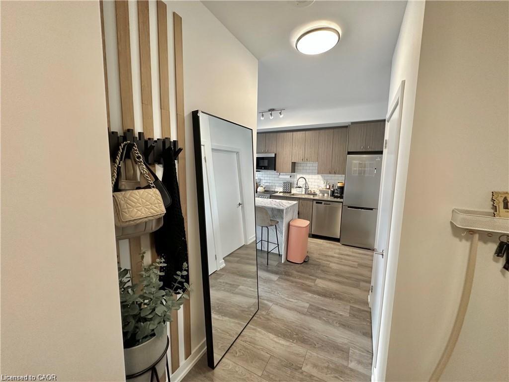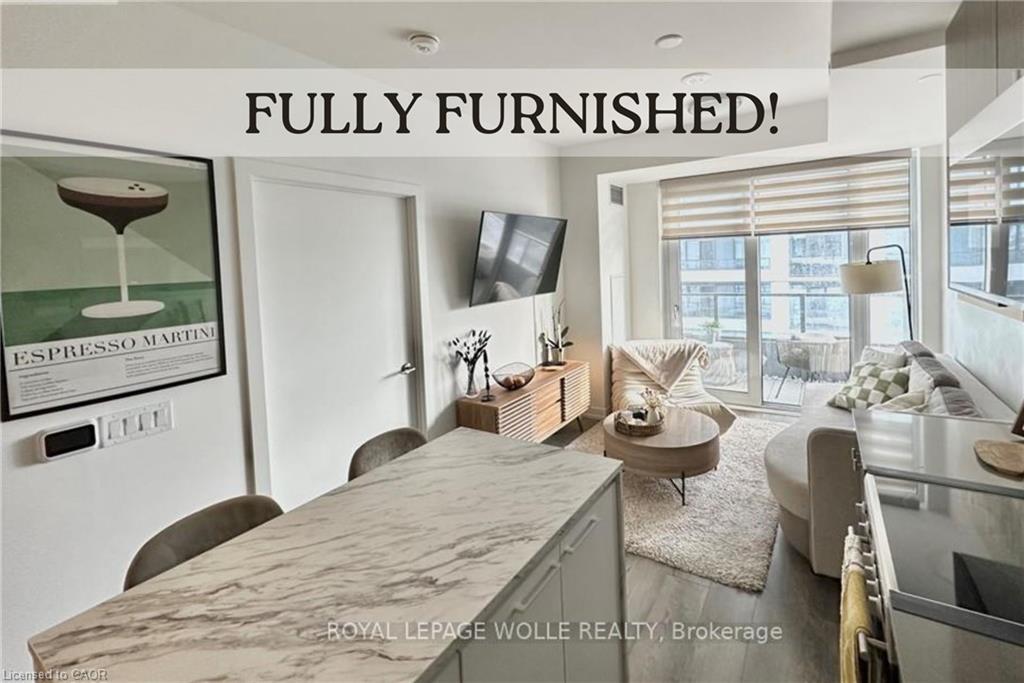 FULLY FURNISHED 1 Bedroom Condo in Station Park with an Exceptional Layout. This stylish unit features a spacious bedroom, an oversized bathroom, in-suite laundry, and an elegant kitchen with an island that opens to a cozy living room. Step out onto the terrace to enjoy breathtaking sunrise and sunset views. Residents have access to top notch amenities, including 24/7 concierge, swim spa, Peloton studio, fully equipped gym, bowling alley, party room with wet bar and private dining, and a terrace with firepits and BBQs. There’s even a spa station for pets! Ideally located just minutes from Downtown Kitchener, Uptown Waterloo, the LRT station, Google, and more. Parking is available for an extra charge. HEAT & INTERNET included in condo fees!