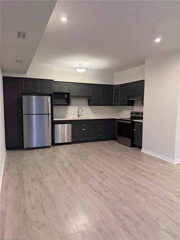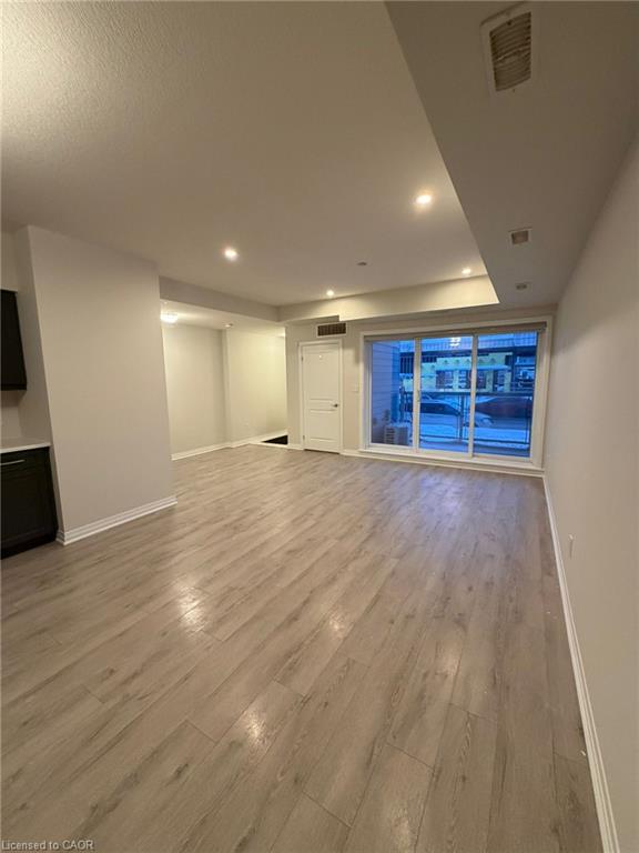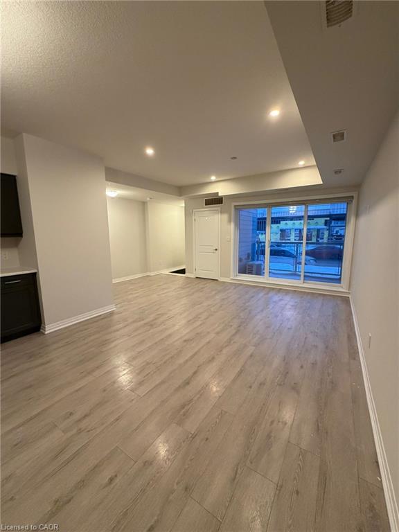 Bright and inviting 2-storey, 2-bedroom, 2.5-bath stacked townhome condo located in desirable Huron Park. Conveniently situated just minutes from Highways 7/8 and 401, and within walking distance to shopping, restaurants, public transit, scenic walking trails, and more. An open-concept main floor filling the space with natural light. The custom kitchen features stainless steel appliances and overlooks the spacious living room, complete with a sliding patio door leading to your private balcony. All window coverings are included. A 2-pc powder room is located a few steps down, thoughtfully tucked away for privacy. The main floor is finished with high-quality laminate flooring for easy maintenance.