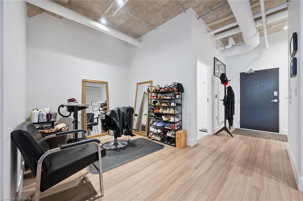 Where historic character meets modern urban living. Welcome to Suite 115 at 120 Huron Street, a beautifully designed 1-bedroom + den, 1-bath condo offering the perfect blend of charm and contemporary style. This bright and inviting unit features soaring 10-foot ceilings, oversized windows, and an open-concept layout that allows natural light to pour in throughout the space. Thoughtfully finished with quartz countertops and complemented by an industrial-inspired exposed concrete ceiling, the unit delivers both function and elevated design. Enjoy the convenience of a dedicated outdoor parking space equipped with EV charging. Step out onto your own private balcony, an ideal spot for your morning coffee or to unwind at the end of the day. Residents have access to an impressive array of amenities including a rooftop terrace complete with BBQs, lounge seating and a fire feature, a fully equipped fitness centre, games room, indoor bike storage with heated ramp access, and a pet wash station. Ideally situated just minutes from downtown Guelph, you'll love the easy access to local cafés, restaurants, boutique shopping, farmers' markets, scenic trails, and all the vibrant community offerings the city is known for, with convenient connections to the GTA. A stylish and comfortable lease opportunity in one of Guelph's most desirable locations.