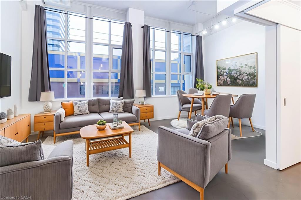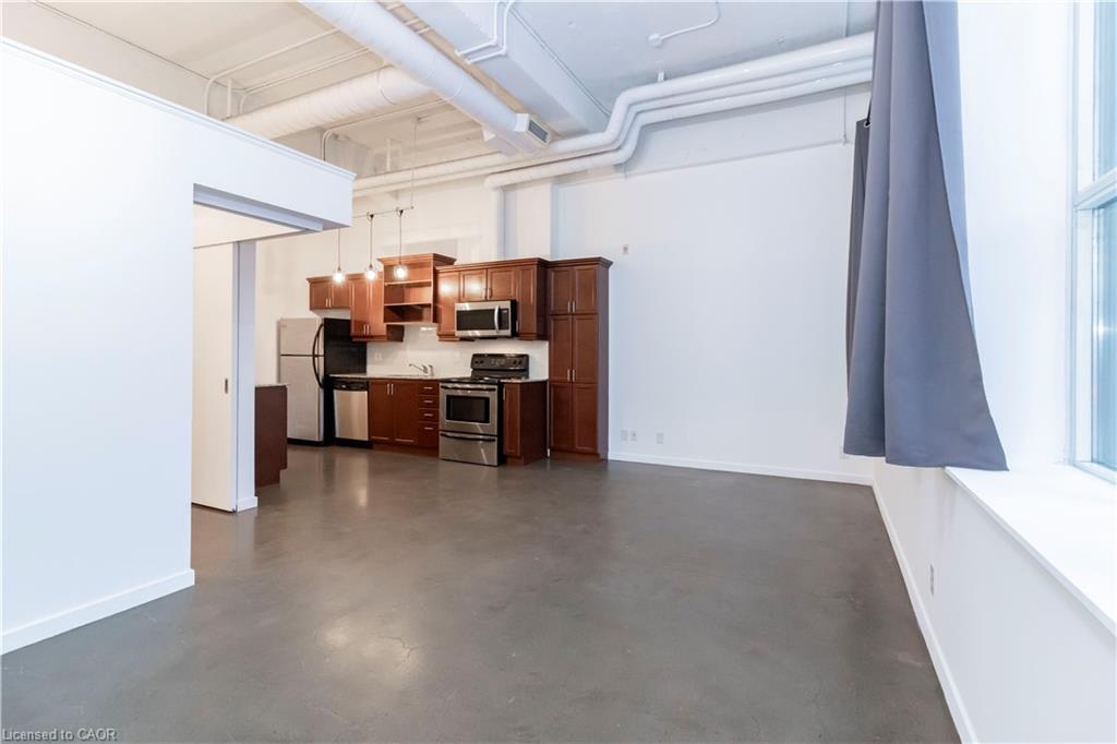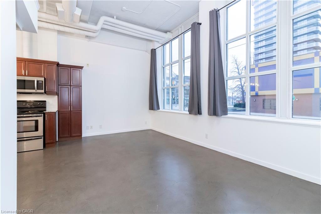 Discover elevated living at Suite 116, located within the iconic Kaufman Lofts. Where unmatched loft character meets unparalleled convenience in the heart of Downtown. This 1-bedroom, 1-bathroom suite spans 600 square feet of thoughtfully designed space, featuring 14-foot soaring ceilings that create an airy loft-style ambiance, floor-to-ceiling windows that bathe every room in natural light, and luxurious polished concrete floors that exude industrial elegance. What truly sets Suite 116 apart is its exclusive ownership perks, including a premium surface parking space right near the main entrance – offering unmatched convenience. Say goodbye to circling blocks or navigating underground garages! Complementing this premium parking is a private storage locker for all your seasonal needs, plus quality amenities including a rooftop patio with BBQ facilities for unforgettable gatherings and a versatile party/meeting room perfect for both work and play. Immediate transit access further enhances this unbeatable location, with the LRT stop directly outside your door and the Kitchener GO Station only a 5-minute walk away. Highway 7/8 connectivity ensures effortless commuting, while a short drive leads to the beauty of Victoria Park. This suite represents the perfect opportunity for young professionals seeking urban sophistication, couples starting their journey together, or savvy investors capitalizing on Downtown Kitchener's strong rents and explosive long-term growth. This isn't just a condo – it's a lifestyle upgrade with premium perks that set it apart from every other downtown offering. The premium parking space alone delivers thousands in added value and daily convenience – a rare find in this prime location. Schedule your private showing today and experience why Kaufman Lofts represents the smartest investment in Downtown Kitchener's booming real estate market.