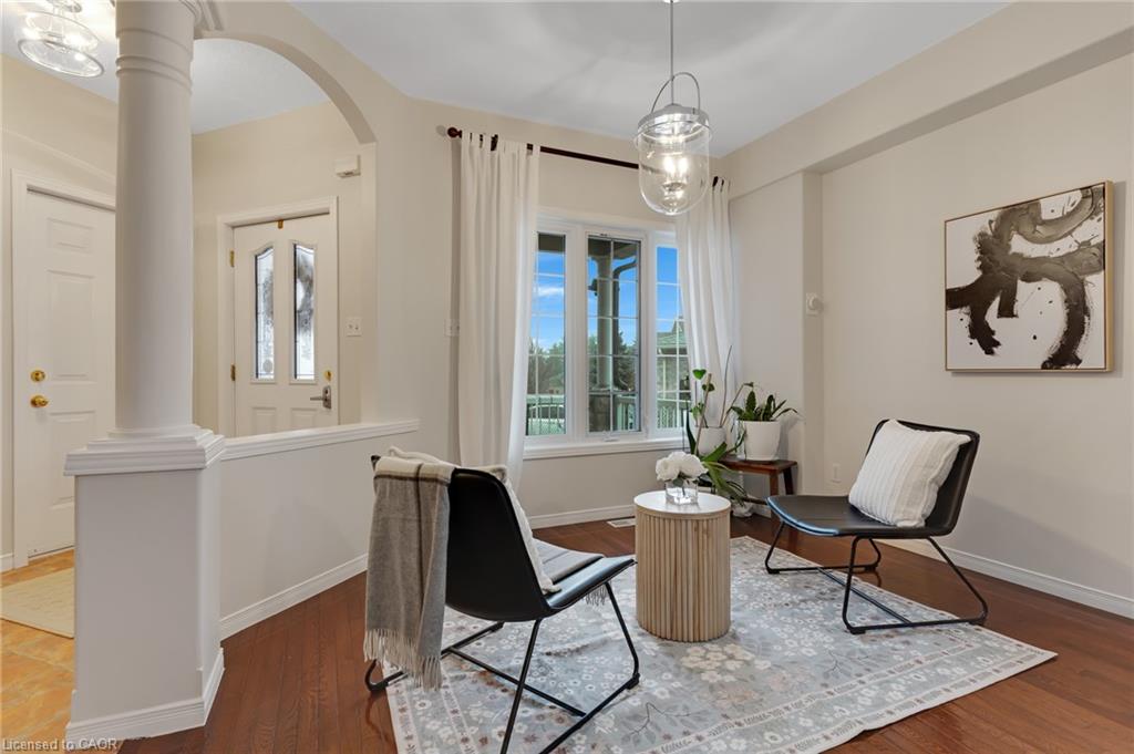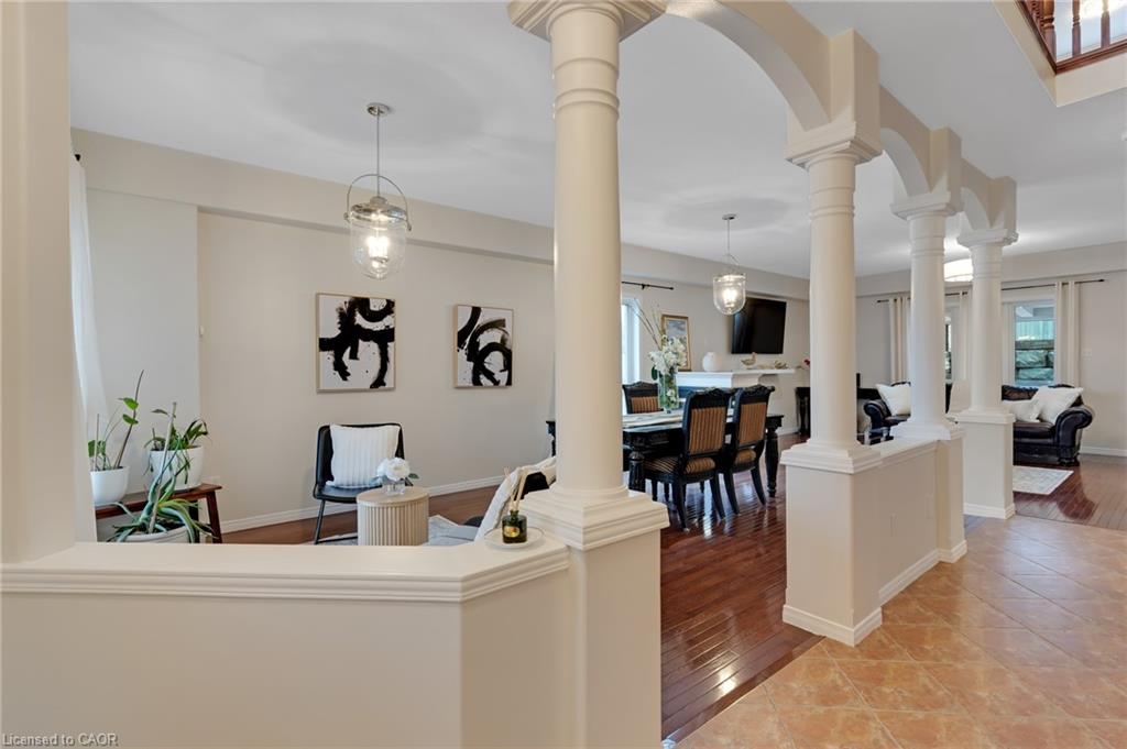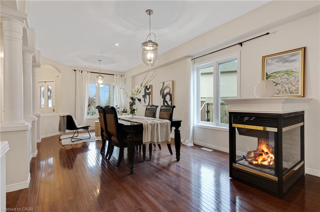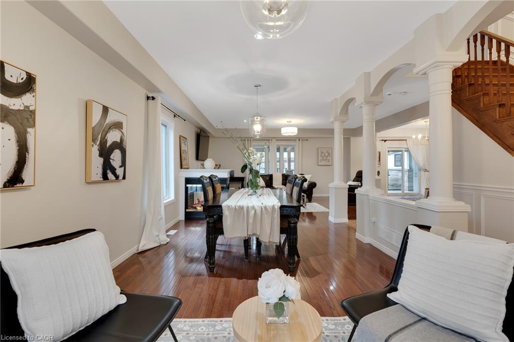 Beautiful & spacious 4-bed, 4-bath home with a 2-car garage, situated on a premium lot in the Industrial Park/Eastview area of Cambridge. No immediate side or rear neighbours & rare vehicle access to the backyard. This property offers privacy & plenty of space for those needing room for equipment, trailers, or recreational vehicles. The main floor features 9-foot ceilings, an open-concept layout, & large windows that fill the home with natural light. There is a formal dining area, a living room with a gas fireplace, an eat-in kitchen with island, ample cupboard space, new countertops, & a sliding door leading to a covered backyard patio. Hardwood flooring runs through the dining & living areas. The main floor also includes an office & a powder room. Upstairs, hardwood flooring continues through the hallway & the 3 bedrooms. The primary bedroom is generously sized & has a large walk-in closet & a 5-piece ensuite. 2 additional bedrooms share a 5-piece main bathroom, & the laundry room is conveniently located on this level as well. The finished basement adds a 4th bedroom, a 4-piece bathroom, & a huge open recreation room with high ceilings & a gas fireplace. It also has in-law potential with plenty of outdoor space to add a separate entrance. There is also a utility room & a large cold cellar for additional storage. Outside, the fully fenced, private backyard offers vehicle access & includes multiple storage sheds, a hot tub, a grape-covered pergola, a sauna, & a fully covered porch. Plenty of space to host gatherings, backyard cookouts, or simply relax outdoors. The home is close to schools, parks, & local amenities with easy access to trails, nearby conservation areas, like Shade’s Mills, & community recreation facilities. Shopping, grocery stores, & restaurants are only minutes away, & commuters will appreciate the convenient access to Highway 401. Don't miss out on this amazing opportunity & book your showing today!