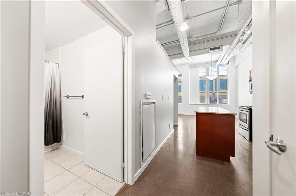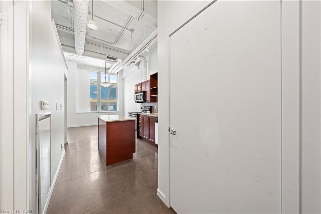 Welcome to the Kaufman Lofts, where style and convenience meet in the heart of Kitchener’s Innovation District. This spectacular 1-bed, 1-bath, 581 SF south-facing suite is now available for lease, offering the perfect blend of modern finishes and an unbeatable location. Step inside to discover a bright, open-concept layout with polished concrete floors, soaring ceilings, and expansive windows that flood the space with natural light. The kitchen is equipped with granite countertops, a centre island, and an undermount sink—designed to be both functional and stylish. Additional features include in-suite laundry, 1 parking space, a storage locker, and access to the building’s beautifully landscaped rooftop terrace with BBQs, ideal for relaxing or entertaining. Just steps from the Tannery, Google, the LRT station, D2L, Miovision, Vidyard, the University of Waterloo’s Integrated Health Campus (School of Pharmacy and the Michael G. DeGroote School of Medicine, a partnership with McMaster University), Victoria Park, and a wide variety of restaurants, pubs, cafés, and boutique shops. Whether you’re looking for convenience, connectivity, or lifestyle, this location has it all. With its combination of design, location, and amenities, this opportunity at the Kaufman Lofts is one you won’t want to miss.