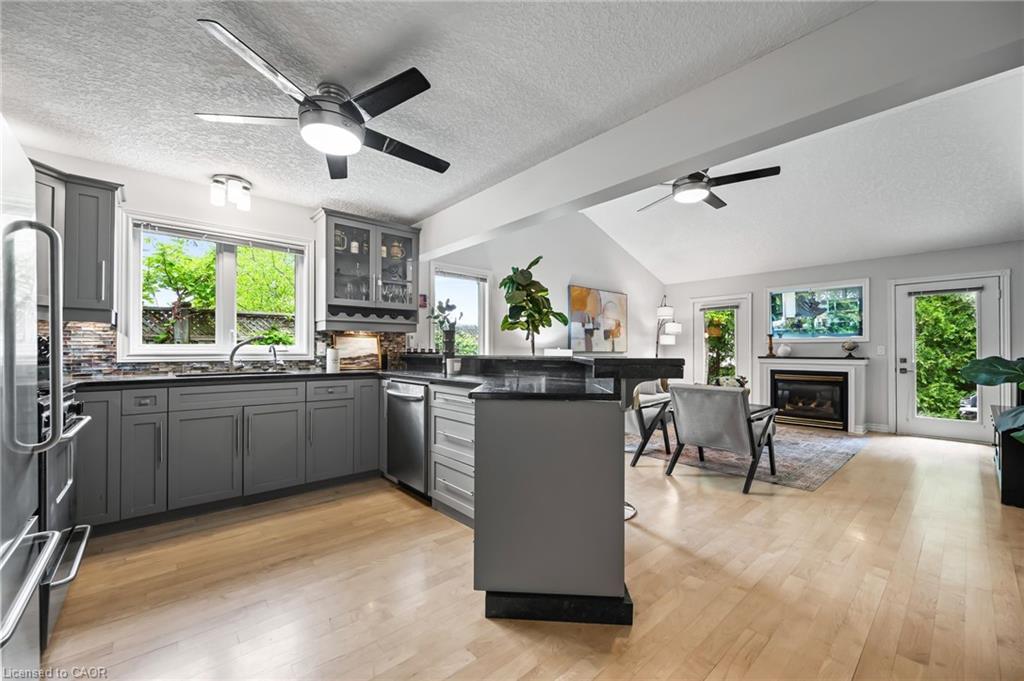 Prime Uptown Waterloo Location – Rare Freehold End-Unit with In-Law Suite! Welcome to this exceptional 4 bedroom, 3 bath freehold end-unit townhouse located in the heart of prime Uptown Waterloo—just steps from the LRT, top restaurants, and all the amenities that make this area so desirable. Truly a rare find, this bright, spacious, and meticulously maintained home offers unmatched flexibility, charm, and convenience. One of the standout features is the fully separated in-law suite with a private entrance from the side yard—ideal for extended family, guests, or potential rental income. With no monthly fees, this freehold property offers outstanding value in one of Waterloo’s most vibrant neighborhoods. The thoughtfully designed layout includes a main floor primary bedroom with a large bathroom featuring a whirlpool tub and separate shower, second bedroom on main floor currently used as dining room, Upstairs, you’ll find a generously sized bedroom and a full bath, perfect for family or visitors. Enjoy the comfort of a double-wide driveway with additional street parking, a private backyard, and a vaulted-ceiling family room that brings in an abundance of natural light complimented with a gas fireplace . Additional highlights include a covered front porch, generator rough-in for peace of mind, and timeless architectural details throughout. Don’t miss this absolutely one-of-a-kind opportunity to own a versatile and beautifully appointed home in one of the region’s most sought-after locations. Roof 2010, Furnace 2016