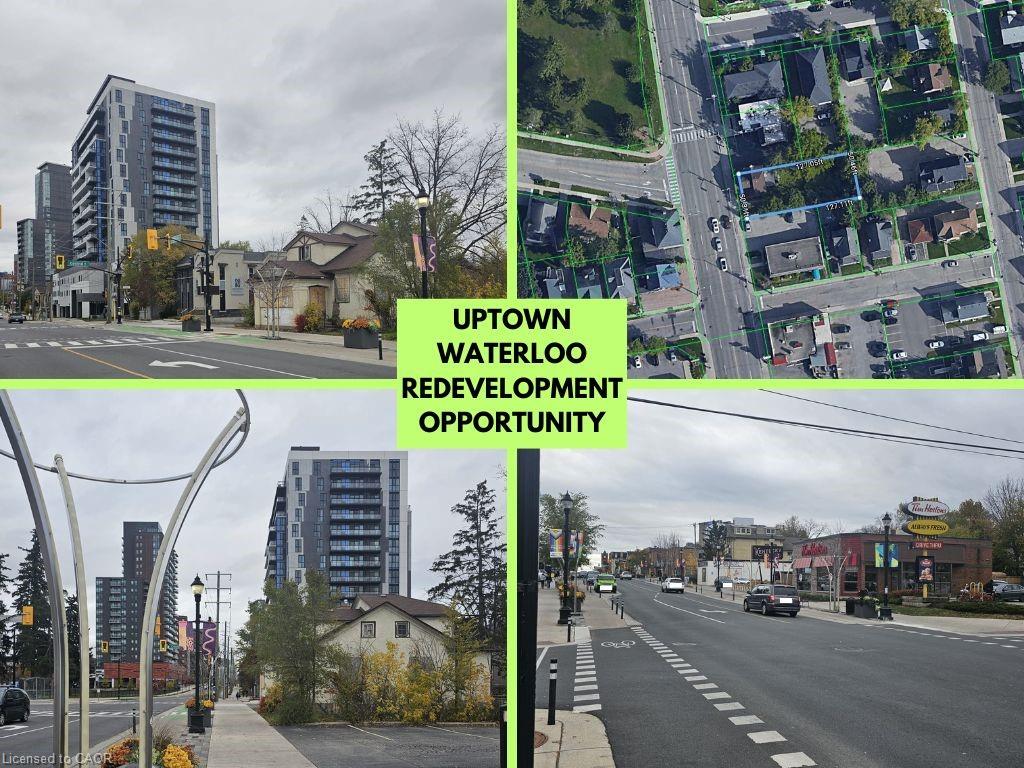 Exceptional Development Opportunity in the heart of Uptown Waterloo! Prime location at the coveted intersection of King Street and Central Street, ideally situated between University Avenue and Bridgeport Road. This 50 ft x 125 ft lot offers outstanding potential for redevelopment with zoning that allows construction up to 18 storeys (U1-60 – Uptown Core). Concept plans (available in attachments) propose an 11-unit building with a total of 41 bedrooms and 3 commercial units on the main level — or bring your own design to take full advantage of this unique zoning. The property is within walking distance to both the University of Waterloo and Wilfrid Laurier University, surrounded by a vibrant mix of retail, dining, and amenities. This is one of the most desirable sites in Waterloo Region, offering excellent exposure, strong growth potential, and ideal suitability for a new commercial or mixed-use development. The existing structure is being sold “as is, where is” and must be demolished by the Buyer. The City of Waterloo has expressed support for new business and redevelopment initiatives in this area. Don’t miss this rare opportunity to secure a premium Uptown Core property with exceptional potential for future growth.