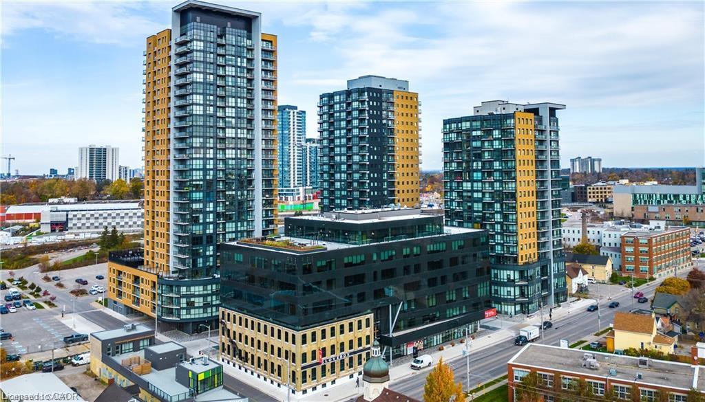 Welcome to luxurious urban living at its finest! This immaculate 1-bedroom, 1-bathroom condo on the 12th floor offers stunning city views and an upscale lifestyle right in the heart of Kitchener. Step inside to discover a high-end kitchen adorned with top-of-the-line appliances, sleek finishes, and freshly painted walls throughout. The spacious living area extends to a private balcony, perfect for your morning coffee or evening relaxation. Enjoy the convenience of in-unit laundry, plus your own underground parking spot and locker for extra storage. The building itself is an amenity paradise, featuring a state-of-the-art fitness center, a relaxing swimming spa, an outdoor basketball court, and a stylish event room equipped with additional kitchen space for entertaining. Step outside to the expansive outdoor terrace with multiple BBQs and ample seating to soak up the sun, or take advantage of the convenient doggie potty area to keep your furry friend happy. Whether you're seeking luxury, convenience, or community, this condo has it all—don’t miss your chance to call it home! - Additional underground parking spaces are $155 per month.