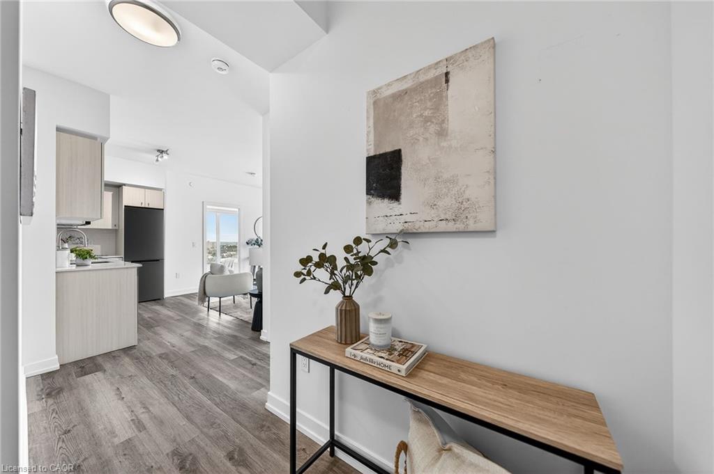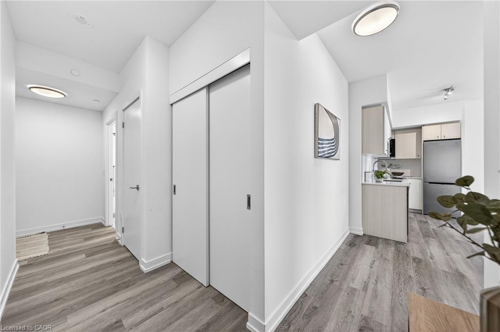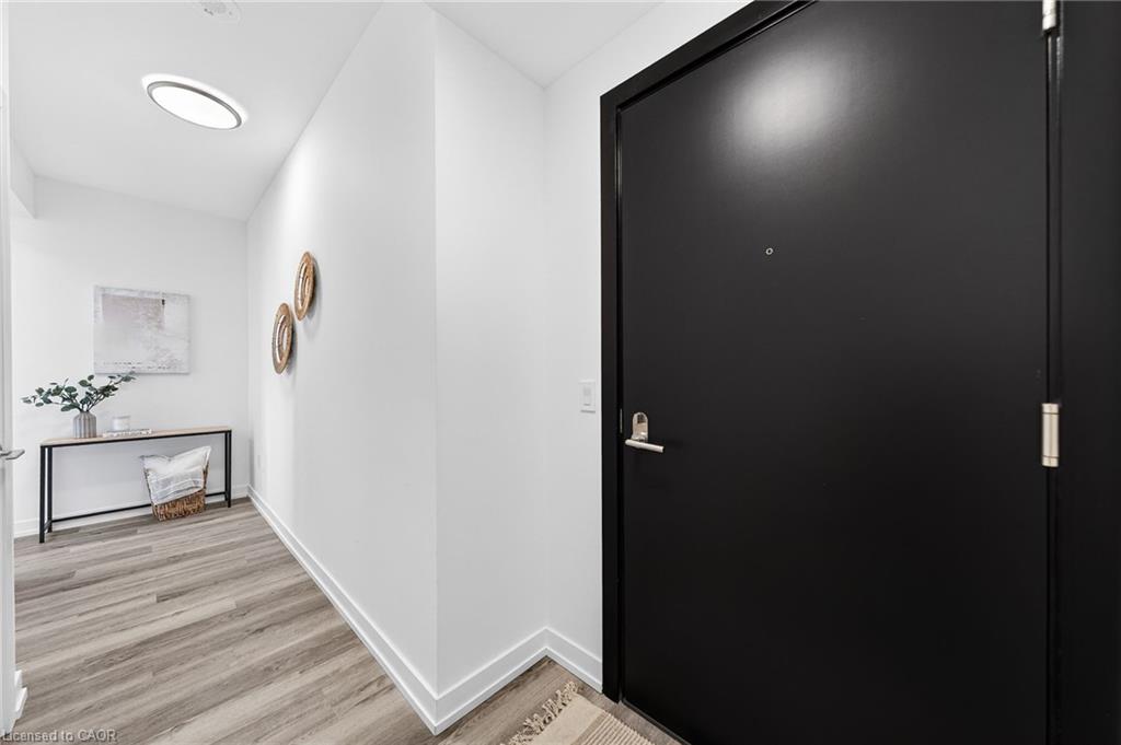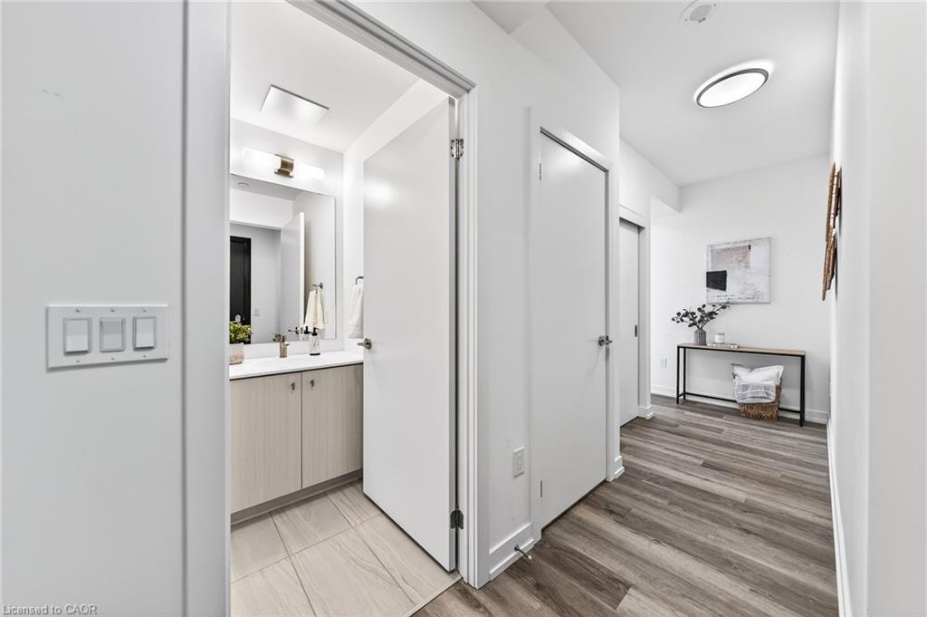 The largest two-bedroom floor plan in the building, this bright corner suite offers unobstructed views from your private balcony, 2 bedrooms, 2 full bathrooms, 1 parking space, and a locker. Enjoy expansive views from every room, including the kitchen, complemented by custom blinds and upgraded flooring throughout. Bell Internet, heat, and air conditioning are included in the condo fees. Centrally located in the Innovation District, Station Park is home to some of the most sought-after amenities in the region. Residents enjoy access to a two-lane bowling alley with lounge, premier lounge areas with bar, table tennis and foosball, private dining room with kitchen, landscaped outdoor cabanas with BBQs, dog washing station, spa and hot tub, fully equipped fitness centre, yoga/Pilates studio, and Peloton studio. Additional conveniences include a concierge desk, private bookable dining spaces, parcel and food delivery services, smart parcel locker system.