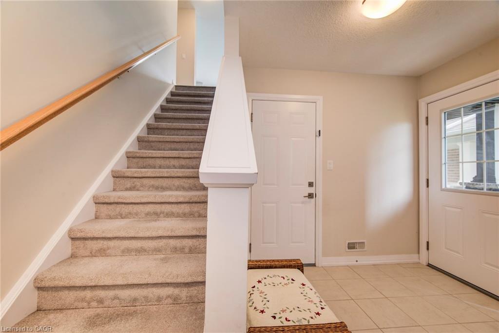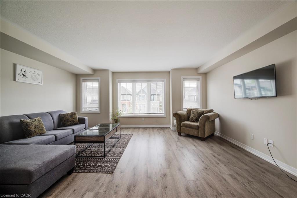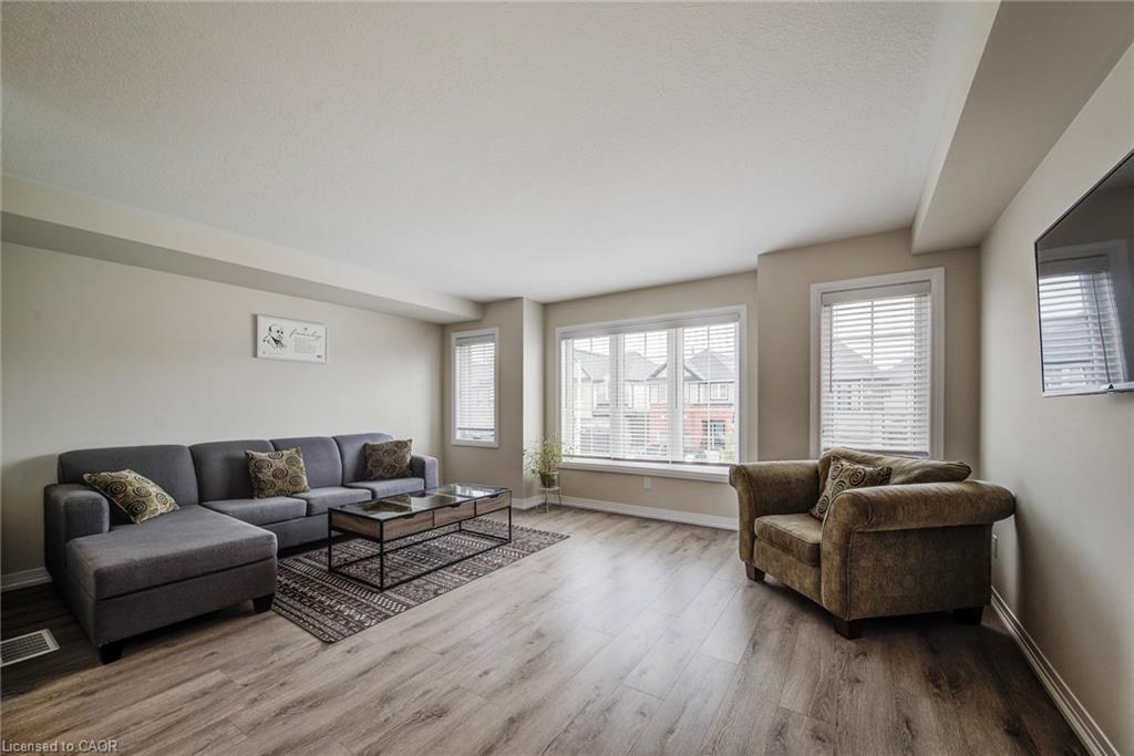 LARGE END UNIT TOWNHOME CLOSE TO 2000SF WITH WALKOUT BASEMENT & 2 CAR GARAGE. Welcome to this beautiful 3 bedroom, 3 bathroom end-unit townhome located in the sought-after Doon South community. This home offers a 2-car garage with a double driveway, providing parking for 4 vehicles. The entry level features a versatile room—perfect as a 4th bedroom, playroom, home office, or extra living space—with a walkout to the backyard, plus laundry and utility room for convenience. The main floor boasts an open-concept layout filled with natural light from the large living room windows. The modern white kitchen offers a pull out trash bin, a deep cabinet pantry, ample cabinet and countertop space, an eat-in island, stainless steel appliances, and a walkout to a deck for outdoor enjoyment. A spacious dining area completes this inviting level. Upstairs, you’ll find a flexible loft-style space ideal for a home office or play area, 3 generous bedrooms, and a full 4-piece bathroom with granite countertops and new faucet. The primary suite includes a walk-in closet and a private 3-piece ensuite which also includes granite countertops and new faucet. Situated in a family-friendly neighborhood, minutes to the 401, close to schools, parks, trails, shopping, this home is the perfect blend of comfort and convenience.