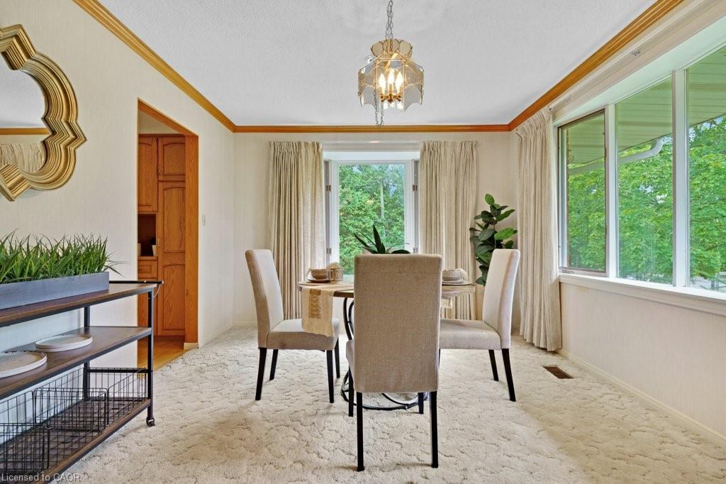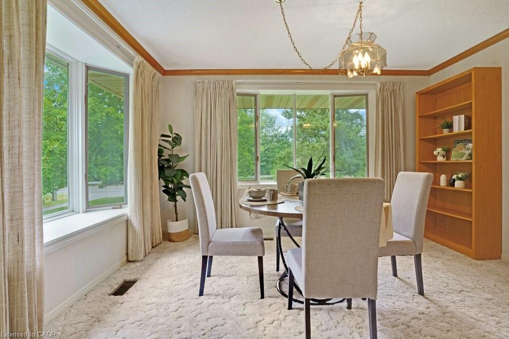 This 1980 reclaimed brick bungalow, situated on a 3/4 acre lot with a walkout basement, offers ample space for a growing family, plus significant parking for cars and larger vehicles. Unique to this property is an outbuilding, with endless possibilities for its future use (e.g., woodworking/spray booth) as several machines remain onsite. The main floor of this home features an eat-in kitchen with balcony access, a dining room, and a living room with large windows providing natural views of the sprawling backyard. The master bedroom has a walk-in closet, an ensuite bath, and balcony access. Adjacent to the master bedroom is the main bathroom, which was renovated in 2019, and two more spacious bedrooms, both with double closets. The lower level includes a full walkout