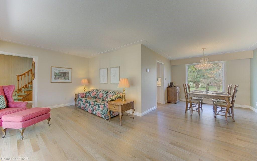 Located on a gorgeous, established street in Kitchener’s sought-after Stanley Park neighbourhood, this classic 4-bedroom, 3-bath home offers an exceptional opportunity for your growing family. Set on a nearly one-quarter acre lot surrounded by mature trees, this spacious, sun-filled property welcomes friends and family with a grand formal living room with large bay window, and a bright formal dining area with new hardwood floors (2023) that extend throughout the main level. The newly-renovated island kitchen (2023) feels fresh and modern, with crisp white cabinets, stylish backsplash, quartz counters, stainless steel appliances, and a walkout to a large deck overlooking the mature, landscaped backyard. A generous family room with floor-to-ceiling windows and welcoming gas fireplace completes the main floor layout. Upstairs, a generous primary suite features a 3-piece ensuite, while 3 additional bedrooms share a 4-piece family bath. Downstairs, a finished basement with twin recreation rooms and a massive utility area, along with a built-in walkup that lends itself to multiple possibilities. Updated fundamentals include roof (2022), most windows, along with furnace and AC (2013). Full 2-car garage with additional parking for 4 in the double driveway. Close to convenient amenities, schools, parks, shopping, and easy access to the expressway and major thoroughfares. A premium build in its time, this welcoming home is the perfect place to build a new generation of memories.