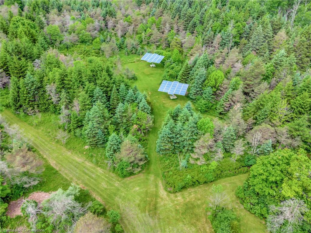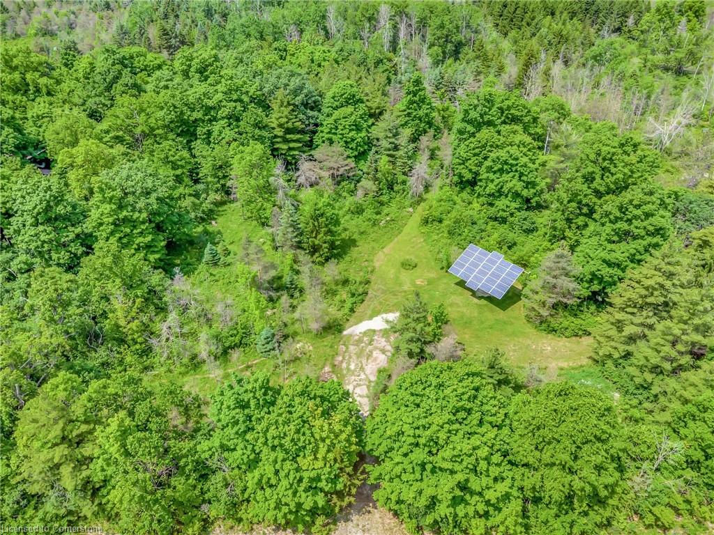 Welcome to 1297 Kirkwall Rd, A once in a lifetime opportunity! This is a 47-acre property offering peace, privacy, a professionally fully designed outbuilding currently operating as a music studio! The possibilities are endless for your dream home! The property is just minutes from major highways including 24, 8, 6, 401, and 403. Ideally situated with easy access to Cambridge, Hamilton, and the GTA, this versatile property is perfect for those looking to invest, build, or simply escape to nature. The walking trails are well groomed allowing for all four seasons to be enjoyed. In the winter they make for great Cross country skiing. The studio can be kept as-is or converted into a guest house, workshop, or secondary dwelling, the studio offers endless flexibility. A cleared section of the land provides a ready-to-build site with house plans available, making it easy to envision your dream home. The expansive grounds include private walking trails that wind through the forested areas, creating a perfect natural retreat. Adding to its future potential, over 1,000 sapling trees have been planted and are projected to be harvest-ready in 5–6 years as part of a Christmas tree farm. Two solar panel systems generate passive income and help keep property taxes low, making this not only a beautiful place to live but a smart investment. Whether you're seeking a peaceful country lifestyle or a canvas for your next big project, 1297 Kirkwall Rd is a rare opportunity to own 47 acres to build your dream home or custom estate, surrounded by nature.