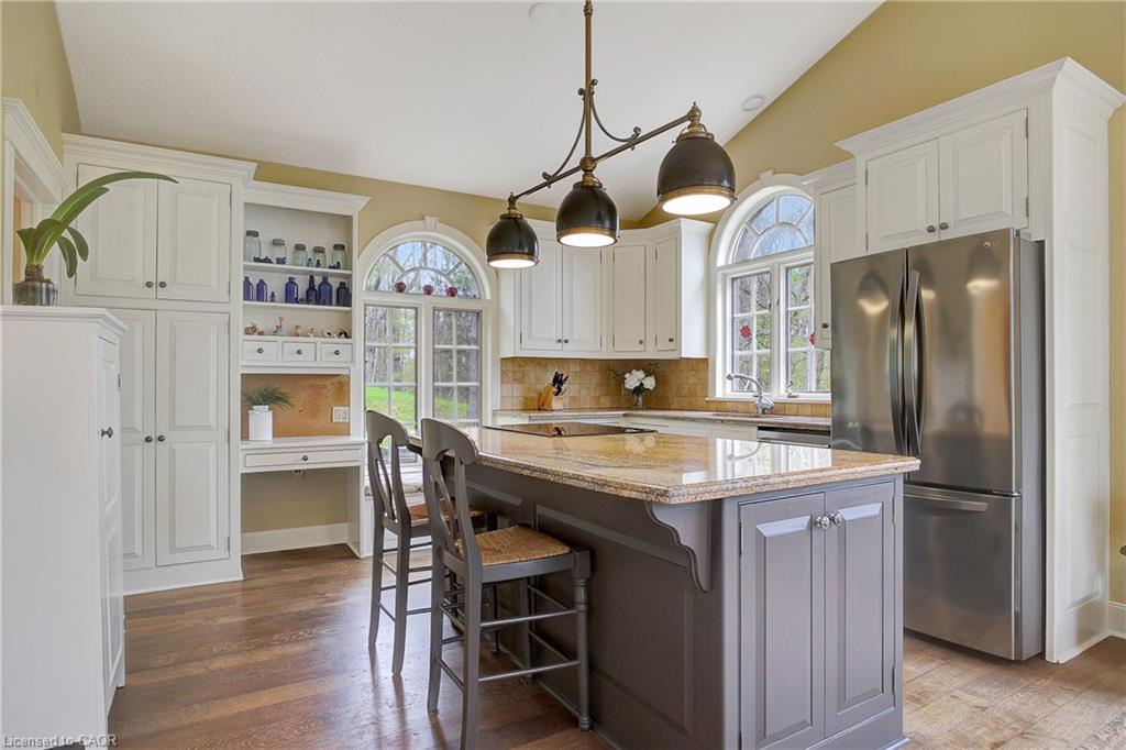 Nestled in a breathtaking setting surrounded by mature trees and a gentle stream, this bungalow loft offers the perfect blend of peaceful country living with the convenience of city amenities just minutes away. Enjoy picturesque views of the Grand River right across the road, with a scenic footbridge nearby for tranquil walks and outdoor adventures.