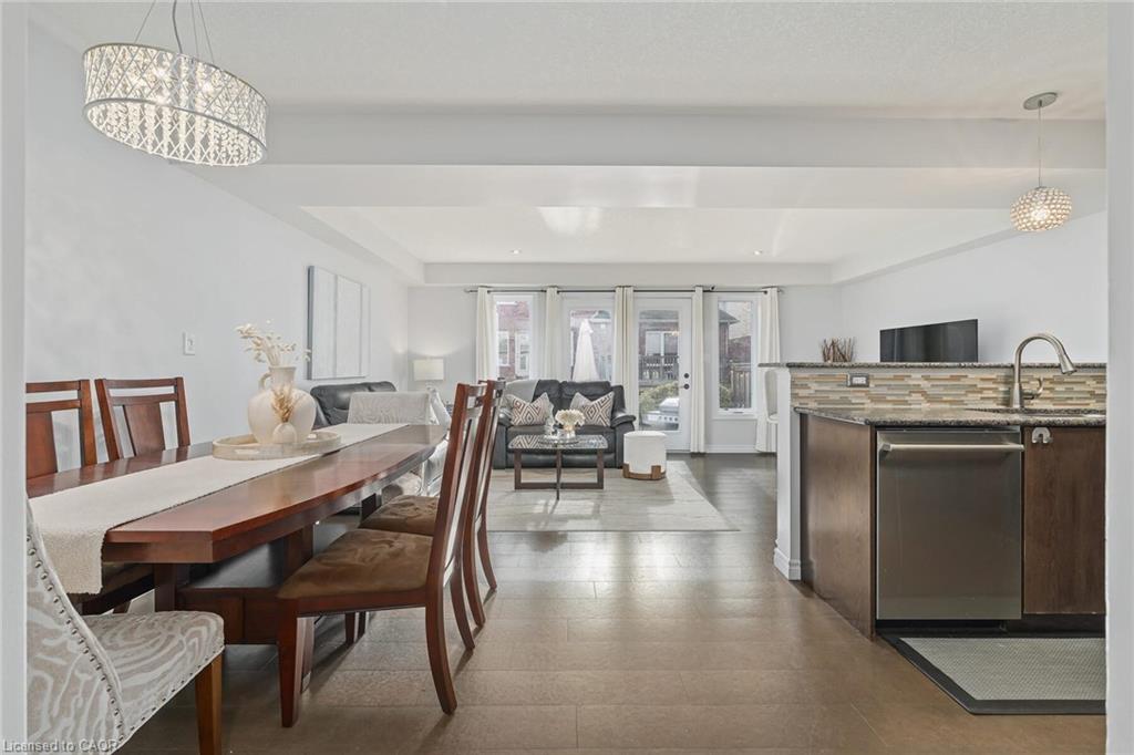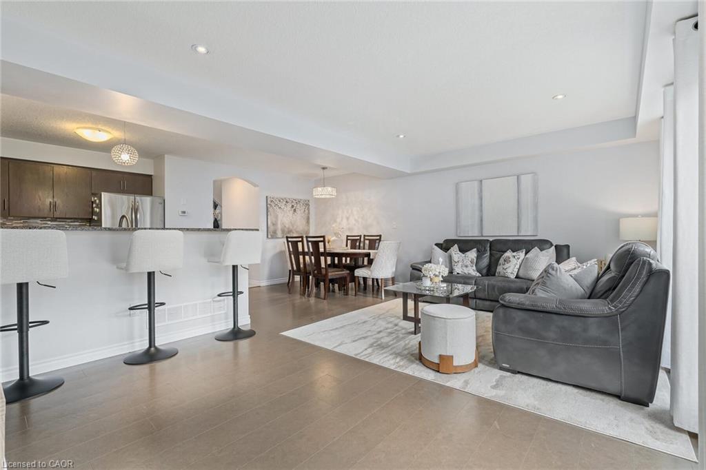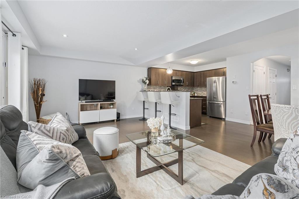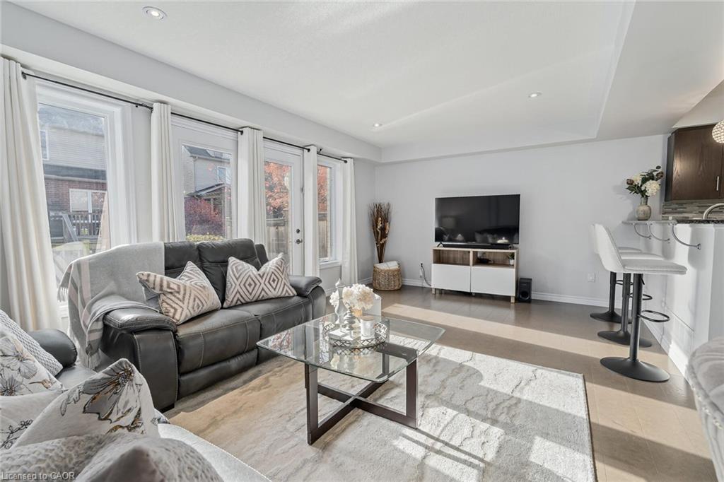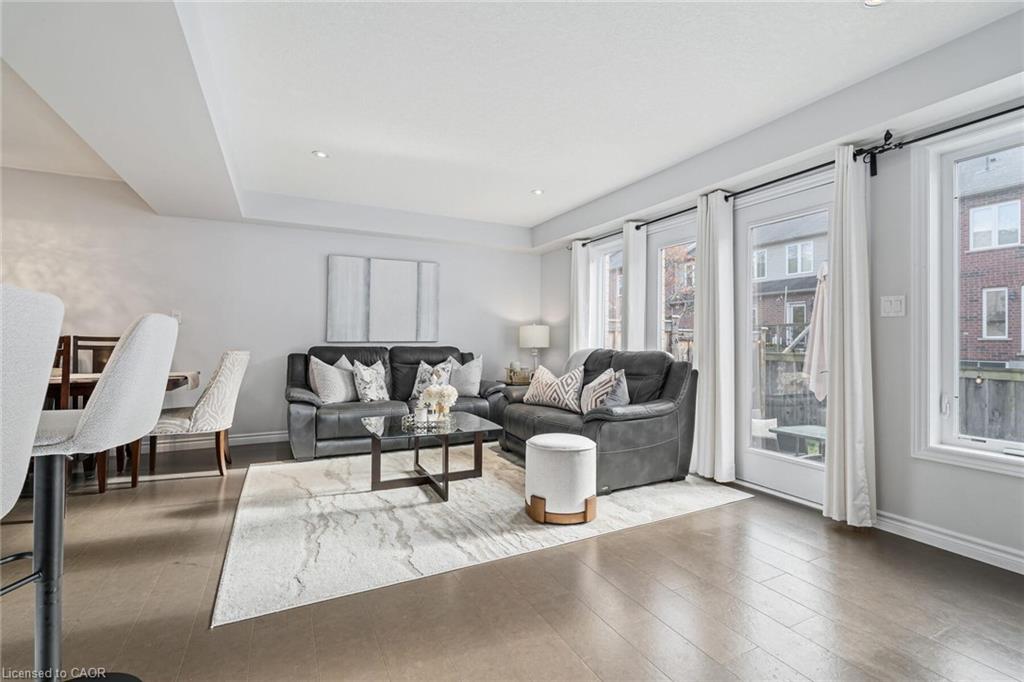 Open the front door, before you step inside, and let your eyes lead you straight ahead through the arched entranceway to a main living space overflowing with windows and natural light. As you step inside this home, you're welcomed by a soaring 17-foot ceiling that stretches from the main floor to the second level, a stunning architectural statement framed by extraordinary oak square pillars and beautiful hardwood stairs. Above, a modern light fixture draws your gaze upward, perfectly complementing the open, airy design. Continue through the open-concept living area, where you can easily walk out to your backyard patio perfect for BBQs, relaxing, and entertaining. At the end of the day, retreat to your primary suite with its 11-foot cathedral ceiling, striking chandelier, and three bright windows that welcome the fresh air. Cozy up on the built-in window bench and enjoy the best view in the complex, overlooking the trees. With an oversized walk-in closet, 3pc ensuite bathroom, second-level laundry, and spacious second and third bedrooms, there's room for everyone to live comfortably. The basement awaits your personal touch, complete with bathroom rough-in, oversized windows, and great ceiling height - the perfect canvas for your future plans. Located minutes from schools, parks, conservation areas, shopping, restaurants, and the renowned University of Guelph, this home blends design, convenience, and lifestyle into one exceptional address.